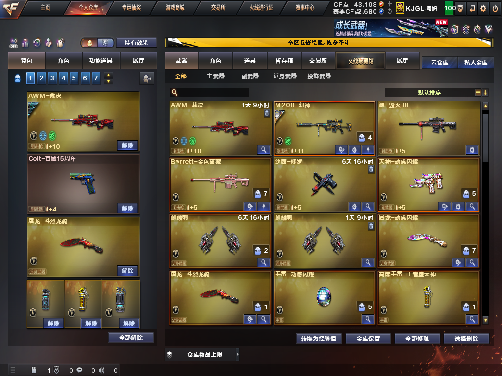 经典爆破号,王者武器:高爆手雷-王者堕天神 英雄武器:Barrett-毁灭沙鹰-修罗M200-幻神,AWM-裁决+音效卡,M4A1-黑骑士M4A1-雷神