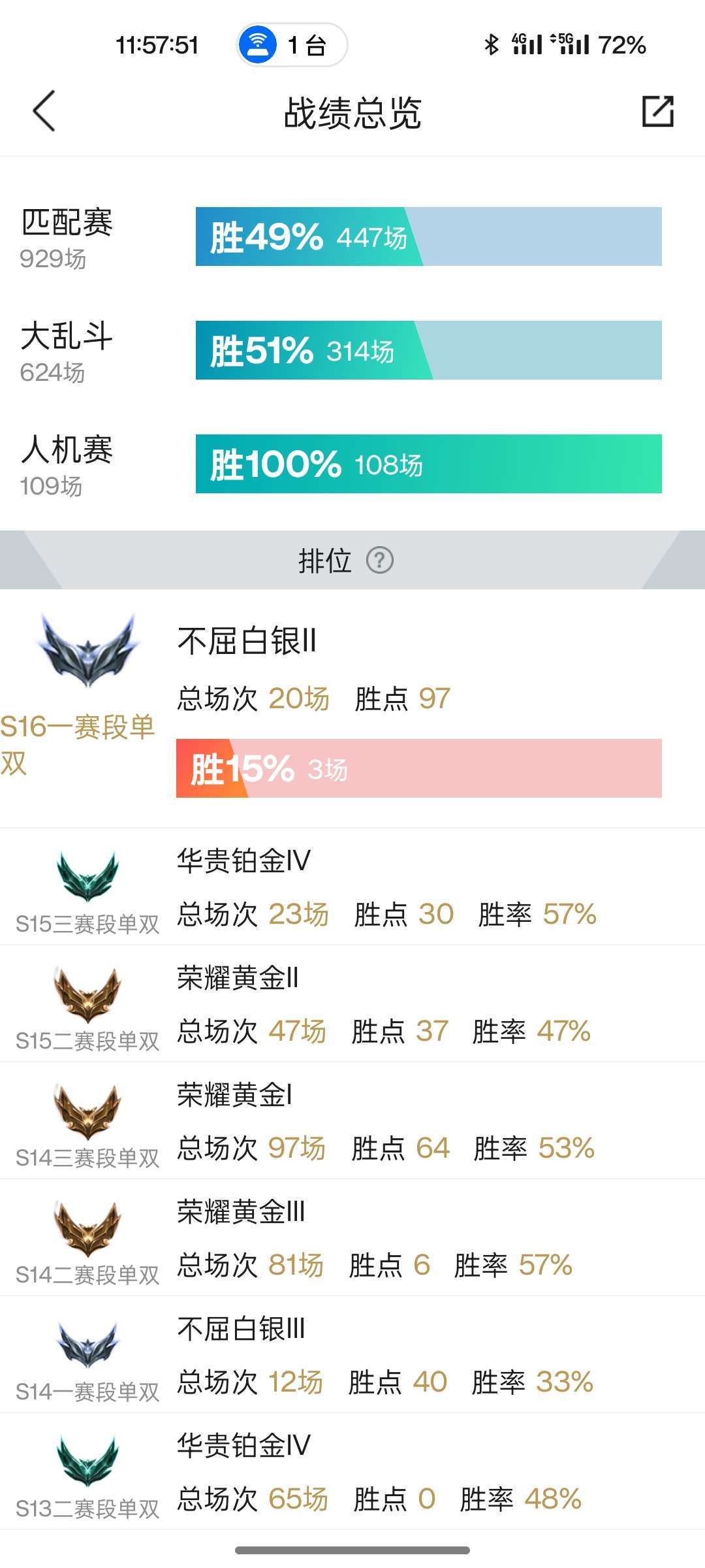 - 单双排段位:华贵铂金IV