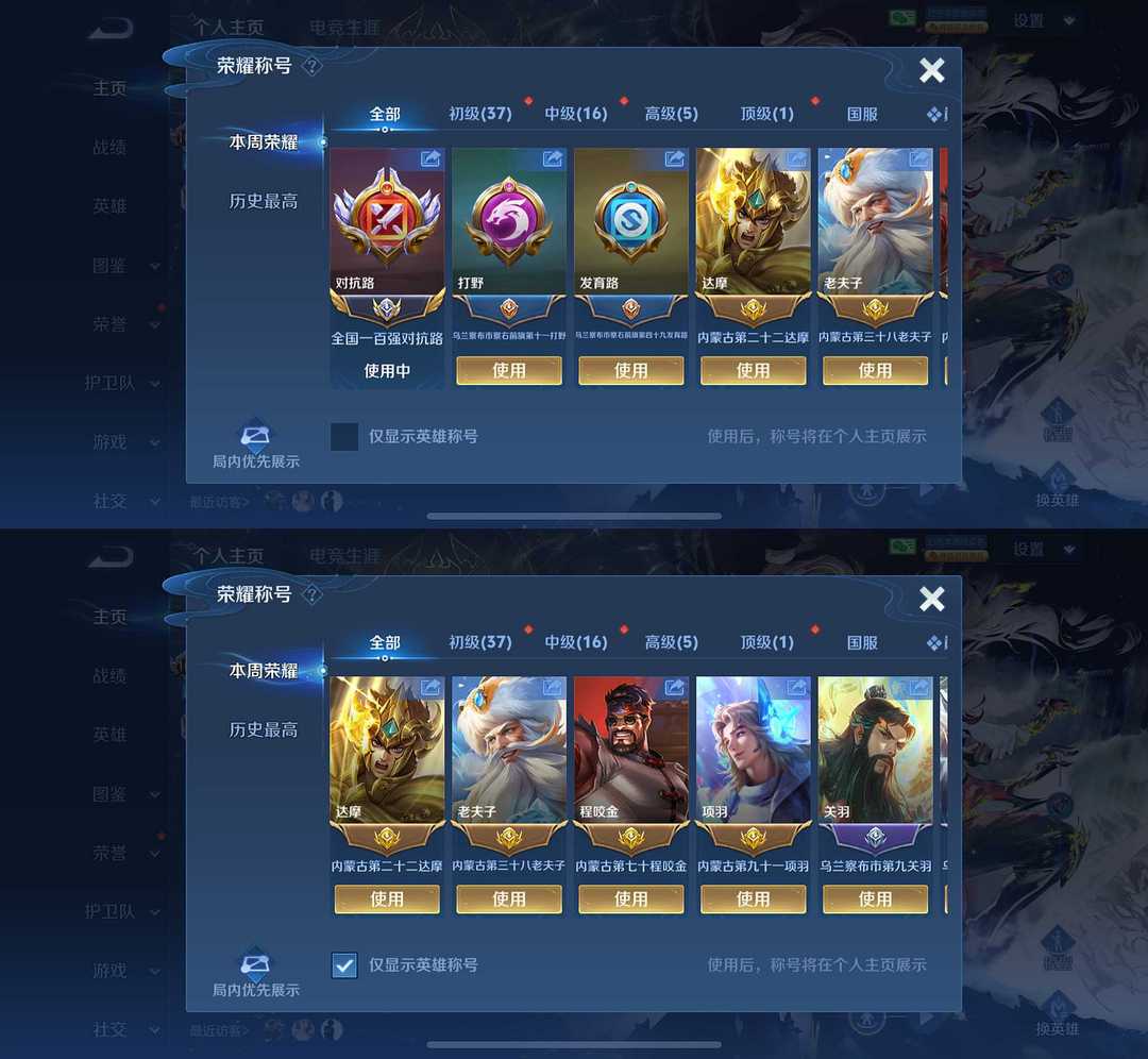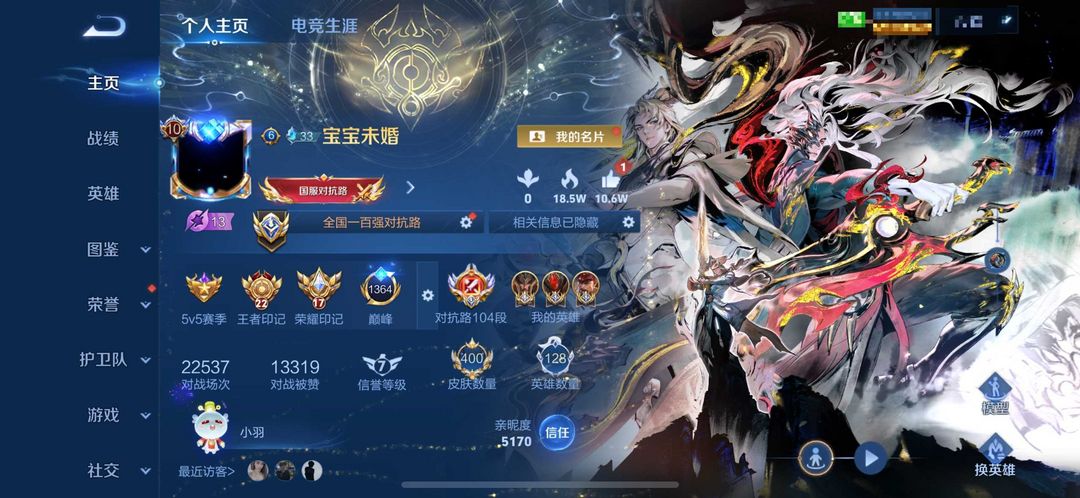 - 巅峰榜排名:1名/1名/1名/1名/1名|对抗路/打野/中路/游走/发育路