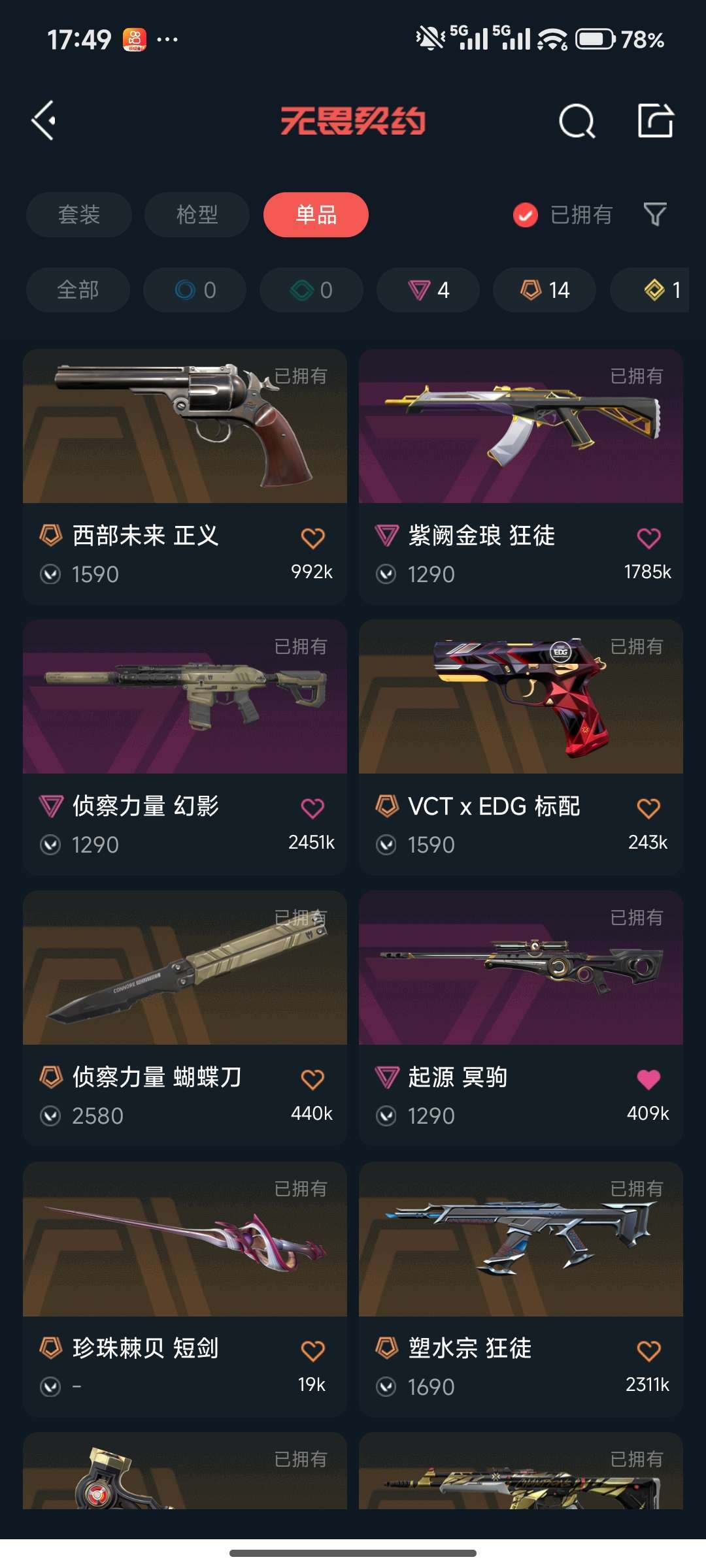 21冠军全套侦查幻影塑水宗紫金狂 剥皮小刀侦查蝴蝶刀 24EDG标配 英雄掠夺戍卫 波普獠犬猫猫鬼魅 西部正义