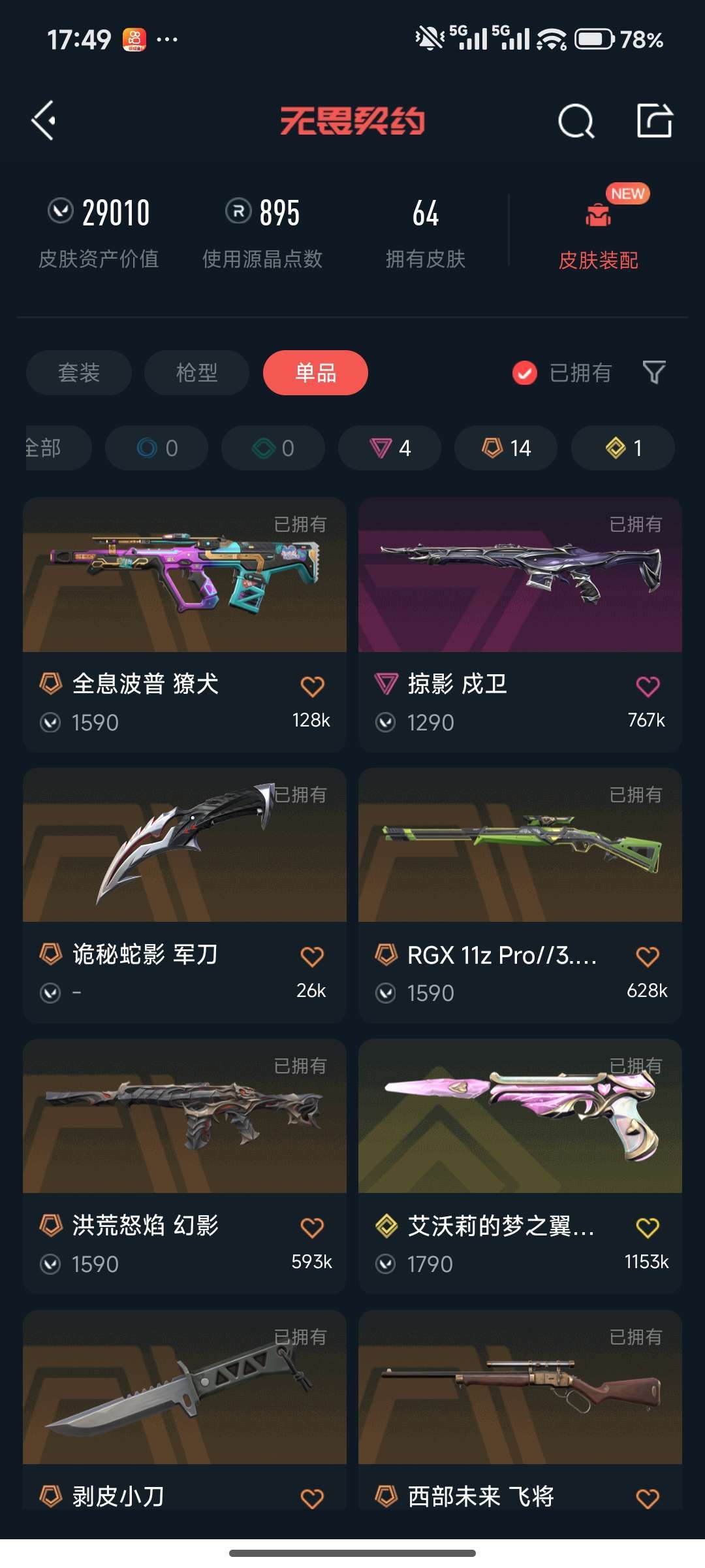 - 皮肤资产价值:29010