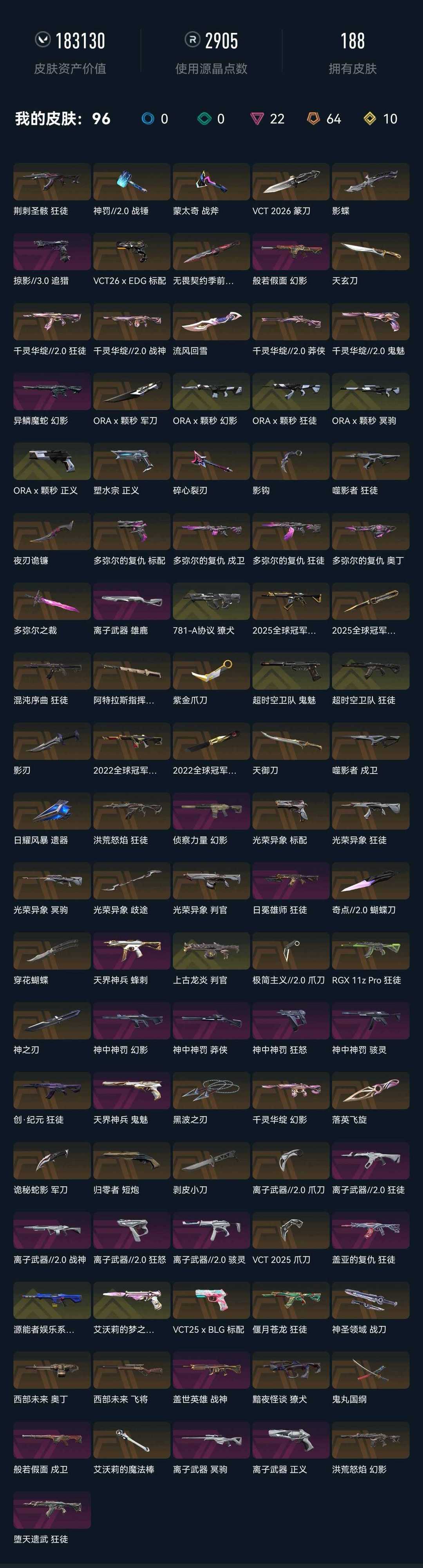 - 武器皮肤数量:188