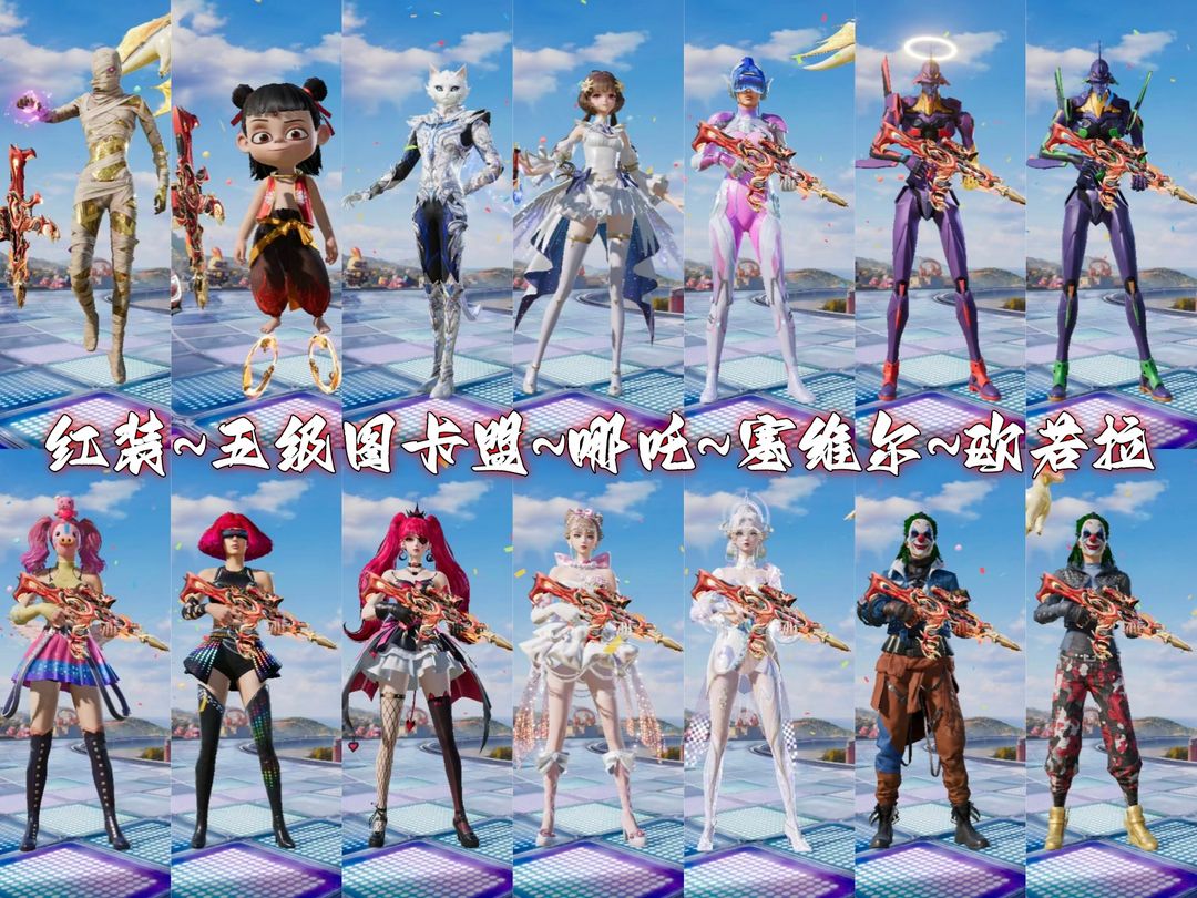 五级图卡盟✨哪吒✨欧若拉✨塞维尔✨小丑✨男神套✨觉醒螳螂✨紫螳螂✨火箭✨猪妹 ✨放客✨洛天依✨十车✨
