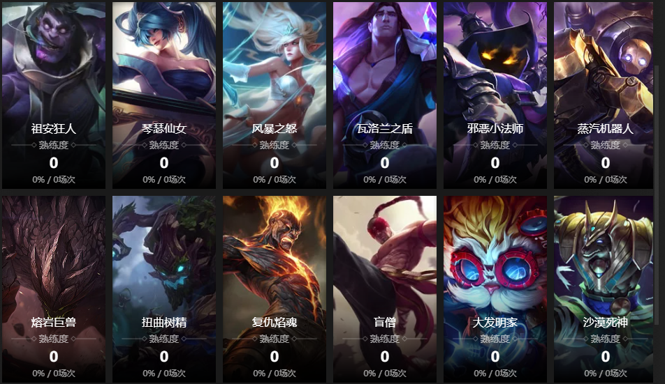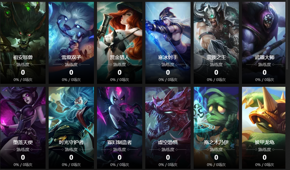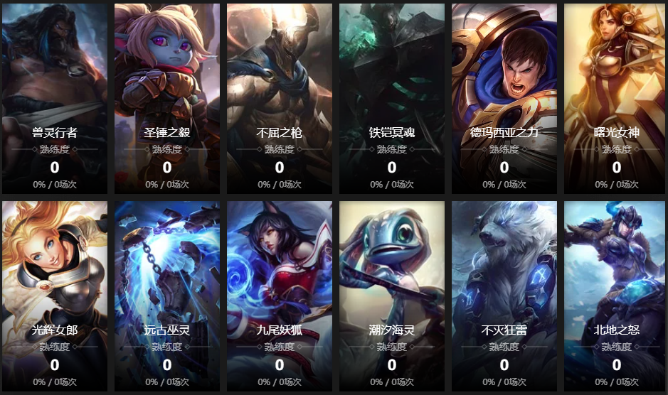 探险家;迅捷斥候;寒冰射手;圣枪游侠;皮城女警;黑暗之女;德邦总管;远古恐惧;无极剑圣;牛头酋长;亡灵战神;战争女神;众星之子;麦林炮手;祖安怒兽;雪原双子;赏金猎人;蛮族之王;武器大师;堕落天使;时光守护者;炼金术士;痛苦之拥;虚空恐惧;殇之木乃伊;披甲龙龟;祖安狂人;琴瑟仙女;风暴之怒;瓦洛兰之盾;邪恶小法师;蒸汽机器人;熔岩巨兽;扭曲树精;复仇焰魂;盲僧;大发明家;沙漠死神;兽灵行者;圣锤之毅;不屈之枪;铁铠冥魂;德玛西亚之力;曙光女神;光辉女郎;远古巫灵;龙血武姬;九尾妖狐;潮汐海灵;不灭狂雷;北地之怒;诺克萨斯之手;皎月女神;暗黑元首;暮光星灵;虚空之女;疾风剑豪;弗雷尔卓德之心;戏命师;暴走萝莉;影流之主;皮城执法官;暗裔剑魔;魔法猫咪;魂锁典狱长;海兽祭司;腕豪 皮肤:黑色天灾 辛吉德 小小英雄:小河灵 棋盘皮肤:默认棋盘 进攻特效:默认 进攻特效