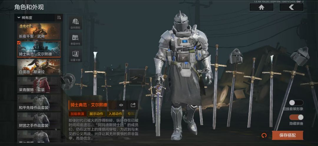 3橙皮5刀,金枪皮9,紫枪皮32,等级4,历史最高段位:王牌,【角色皮肤】:长夜千军武将,骑士典范艾尔熙德,白蔷薇斯黛拉,和平先锋作战套装,财团之手作战套装,蓑沐星霜套装;【近战武器】:赤火炉心,百炼恒常,苍穹利爪,突击匕首,工兵铲;【突击步枪】:冲刺极限QBZ192,竞技风潮M4A1,镀火熔金H416,百锻铁骑AEK,旧王圣谕QBZ191,浮鳞影青QBZ192,和平先锋AKM,骑士之剑AKM,逆火玄石AKM,幻域莎绫M4A1,德尔塔小队M4A1,包络战术AK74N,熔星AKS74U,财团之手AR57,动感舞步ACE31,骑士之剑Groza,典礼武备Groza,骑士之剑T03,深潜T03,甲胄工艺QBZ192;【冲锋枪】:黑金弹头P90,宝石籽料MPX,涂鸦MPX,宝石籽料P90,鱼跃丹青T85;【射手步枪】:旧王圣谕VSS,骑士之剑VSS,战术大师SVDS,典礼武备MK14,鱼跃丹青M110,全地形数码M110,鱼跃丹青QBU191;【栓动步枪】:骑士之剑AX50,包络战术莫辛,粉绒臻选AR30,战术大师SJ16,护命金翎M24;【轻机枪】:外设RPK16;【霰弹枪】:典礼武备S12