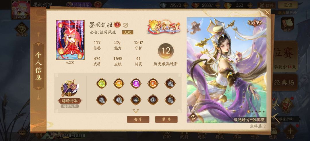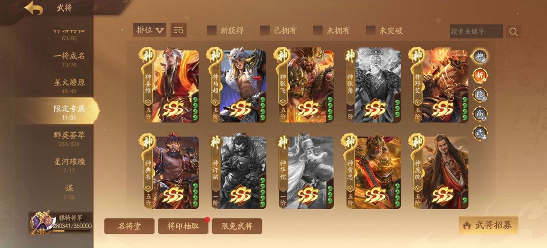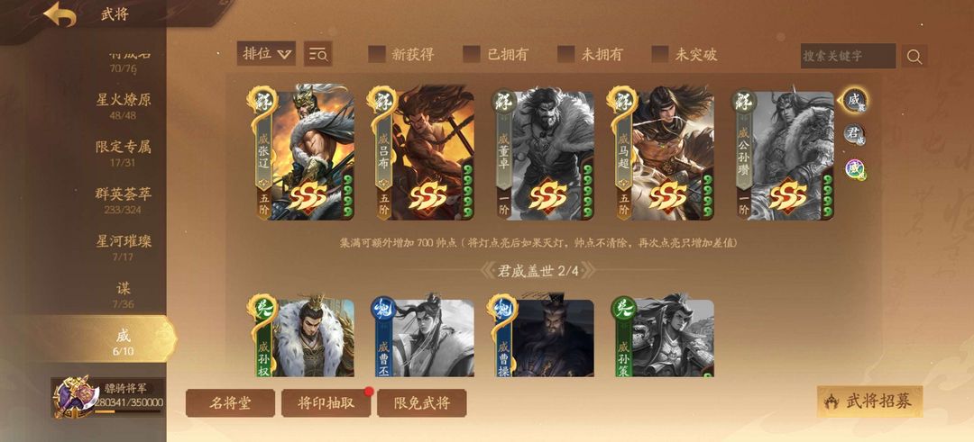 474将神庞统谋姜维威张辽柏灵筠 乐菜文姬许靖徐荣谋司马师等等很多阴间 禁止利用账号进行开挂 本号正在精测武庙禁止乱动宝玉和元宝,乱动的拉黑 单次信誉分扣5分以上的拉黑,豆子什么的随便用 超时不顶号(超过一个小时可能会顶) 打红温了骂人可以,但要是被禁言了拉黑