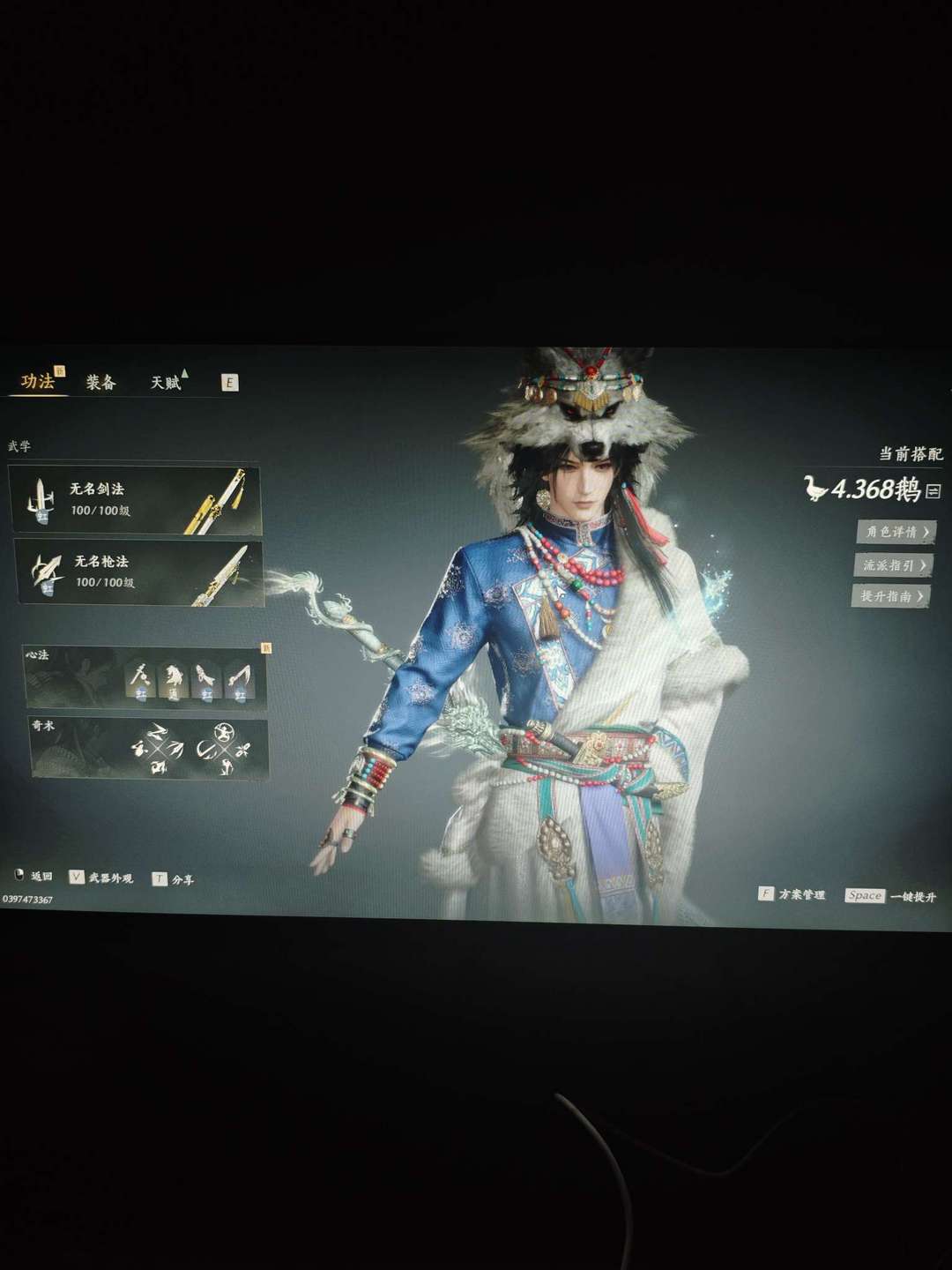 4.36鹅,35套时装,2套258,1套128,4套60,2套赛季装,全套最新金装,武器藏音外观,最近不想玩了,天赋和叠音差点没满,可以冲4.4鹅,鸣金虹流派,无名剑加无名枪,低价出租了