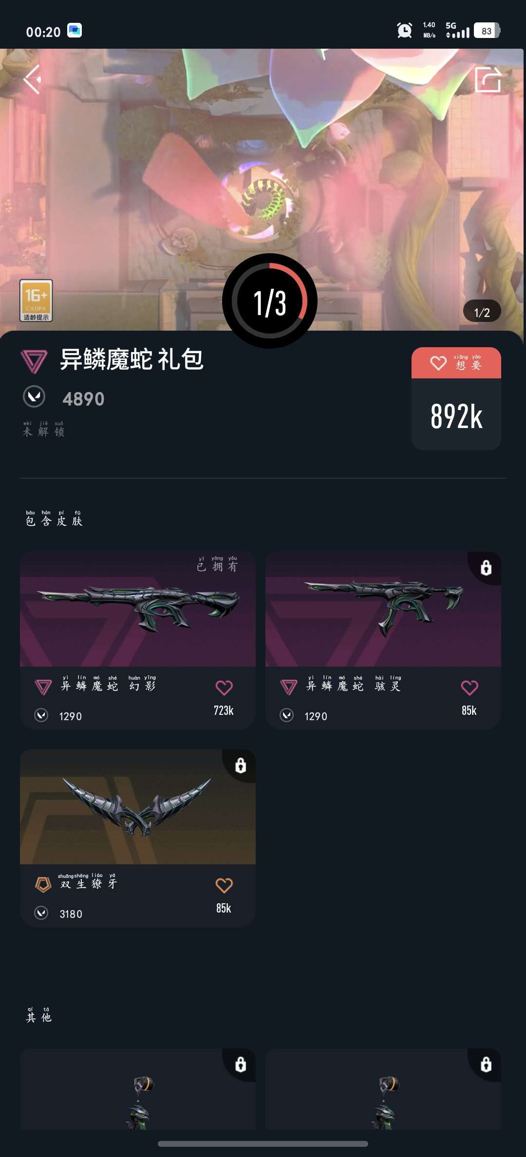 - 皮肤资产价值:2580