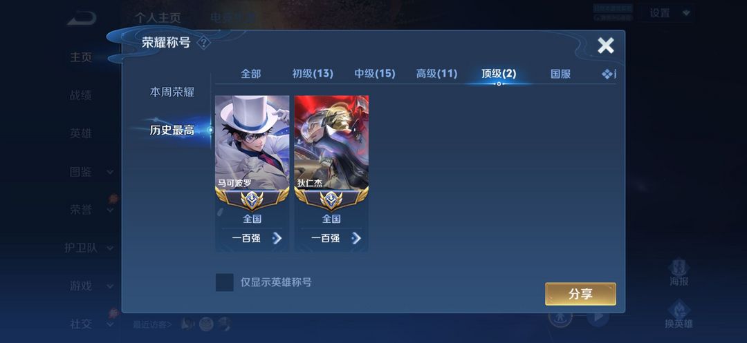 - 段位:至尊星耀