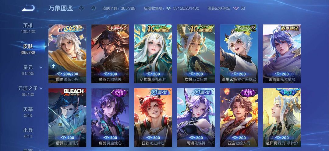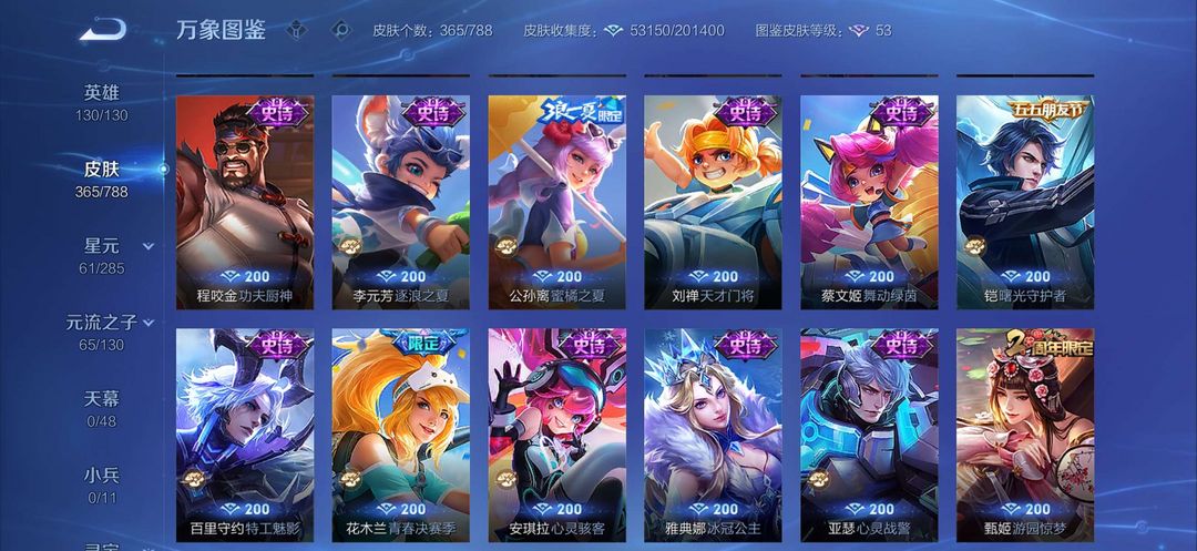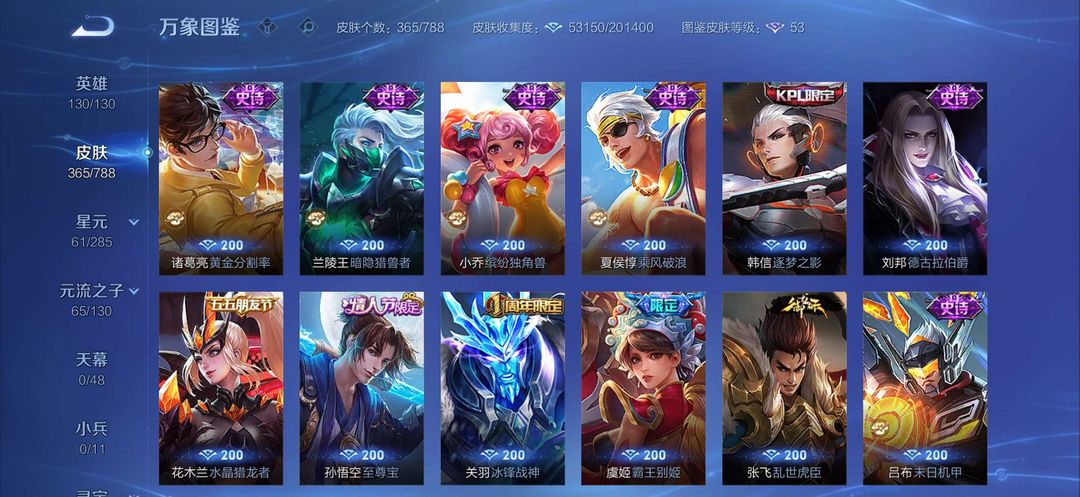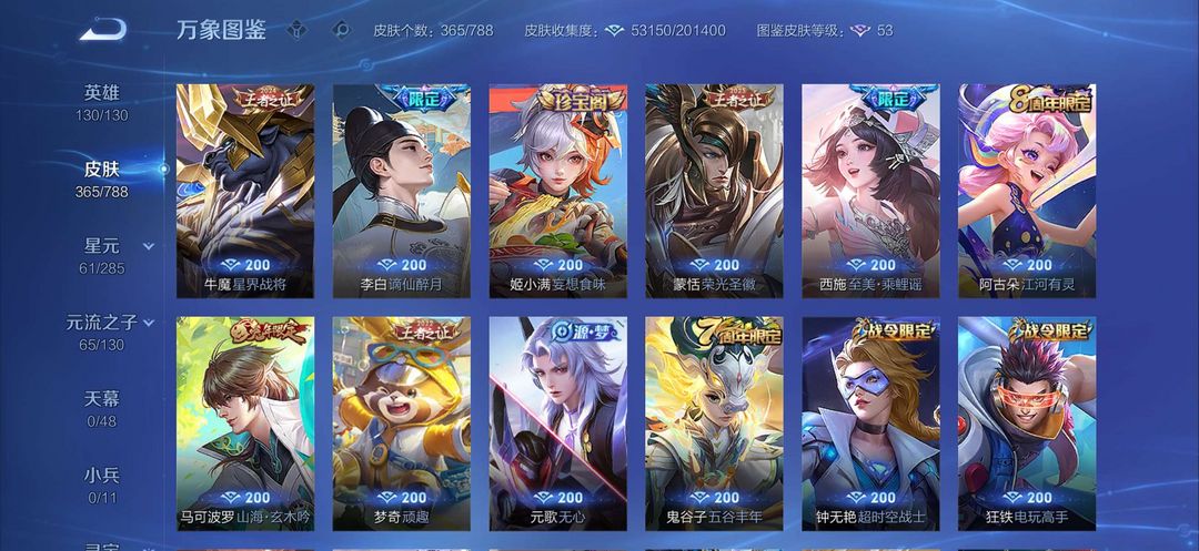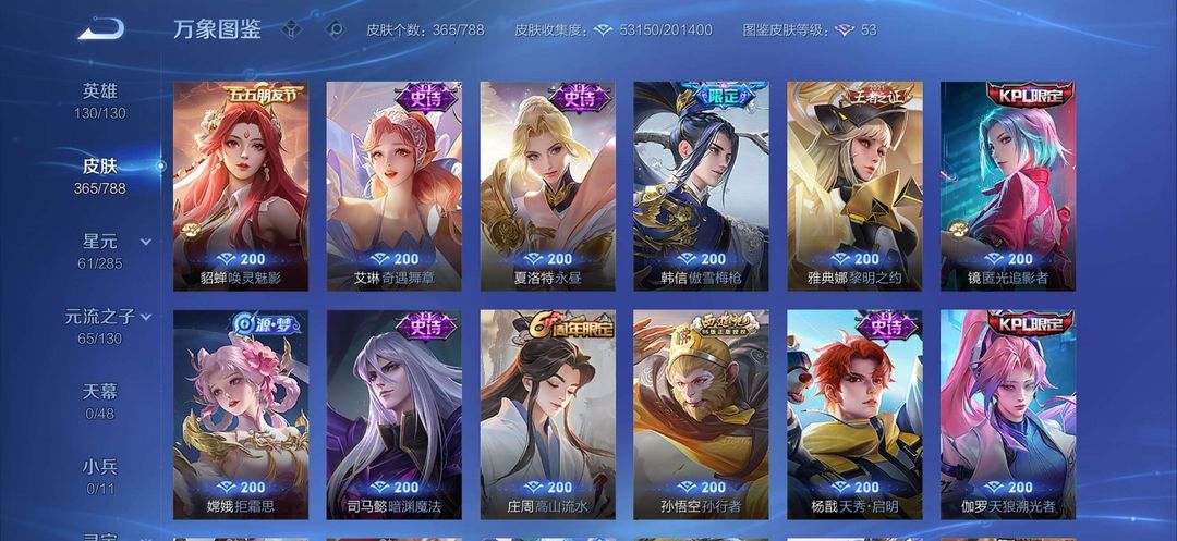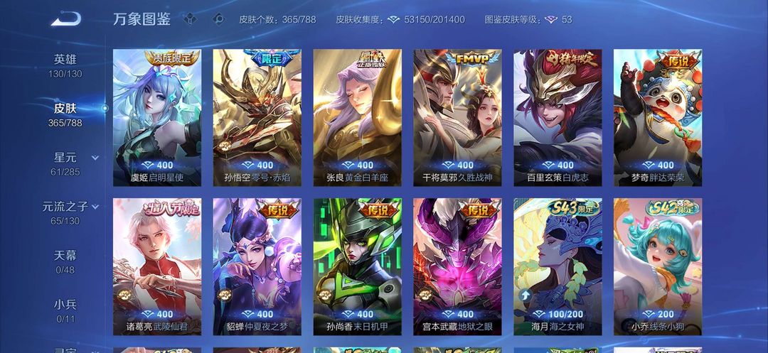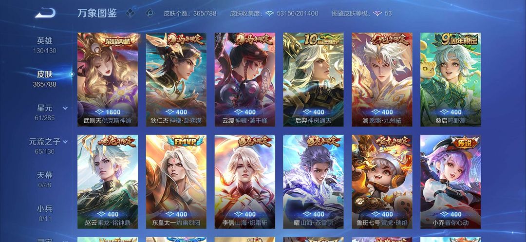 v8全英雄,铭文全满有365个皮肤,传说23个,武则天荣耀典藏