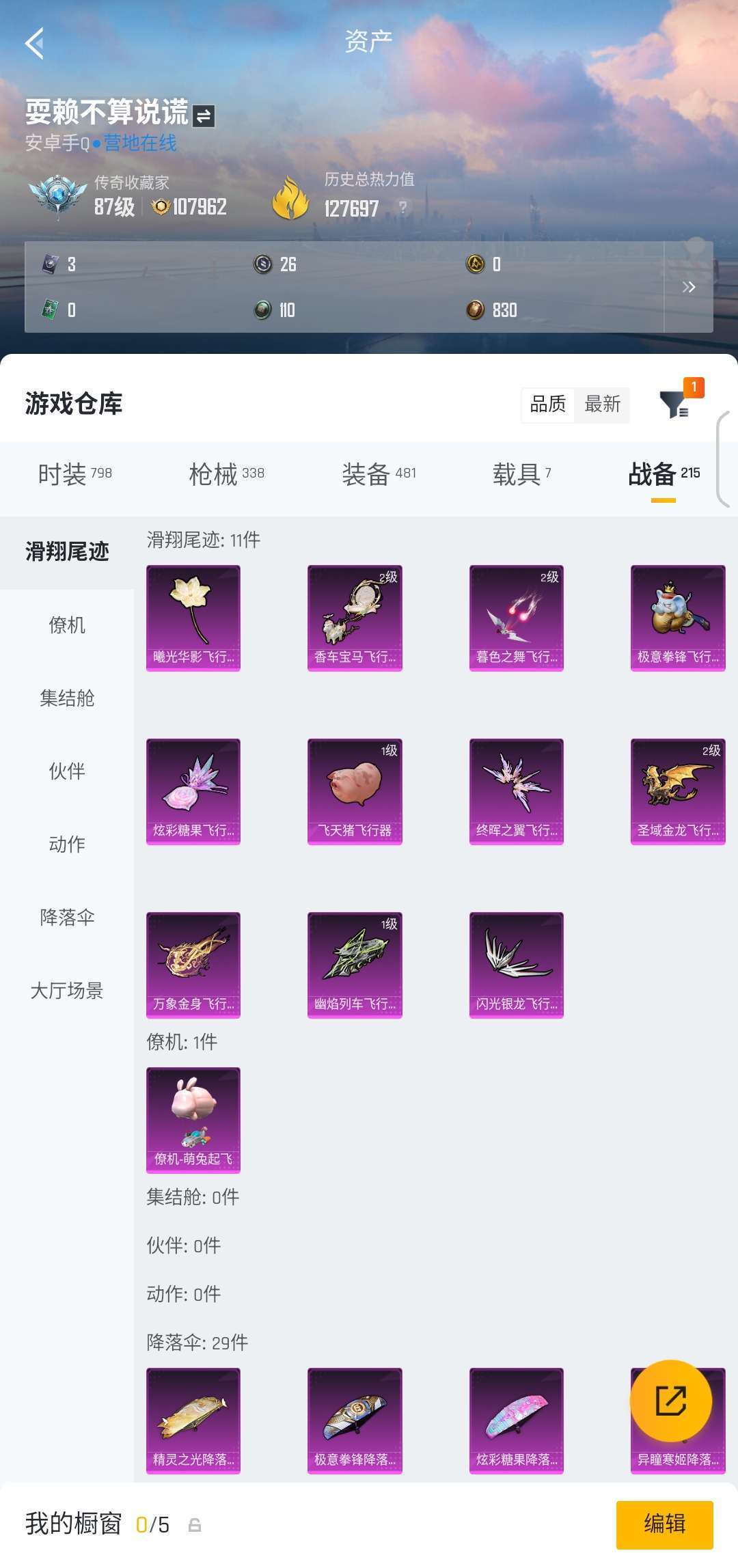 各种稀有飞行器,俩满级,火箭少女,暗影哥特眼罩,都市猎人等等