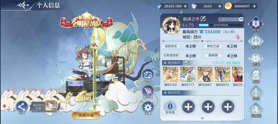 安卓绝版王宝精灵宝宝皮肤,多个100级精灵,50多w战力,有一点皮肤