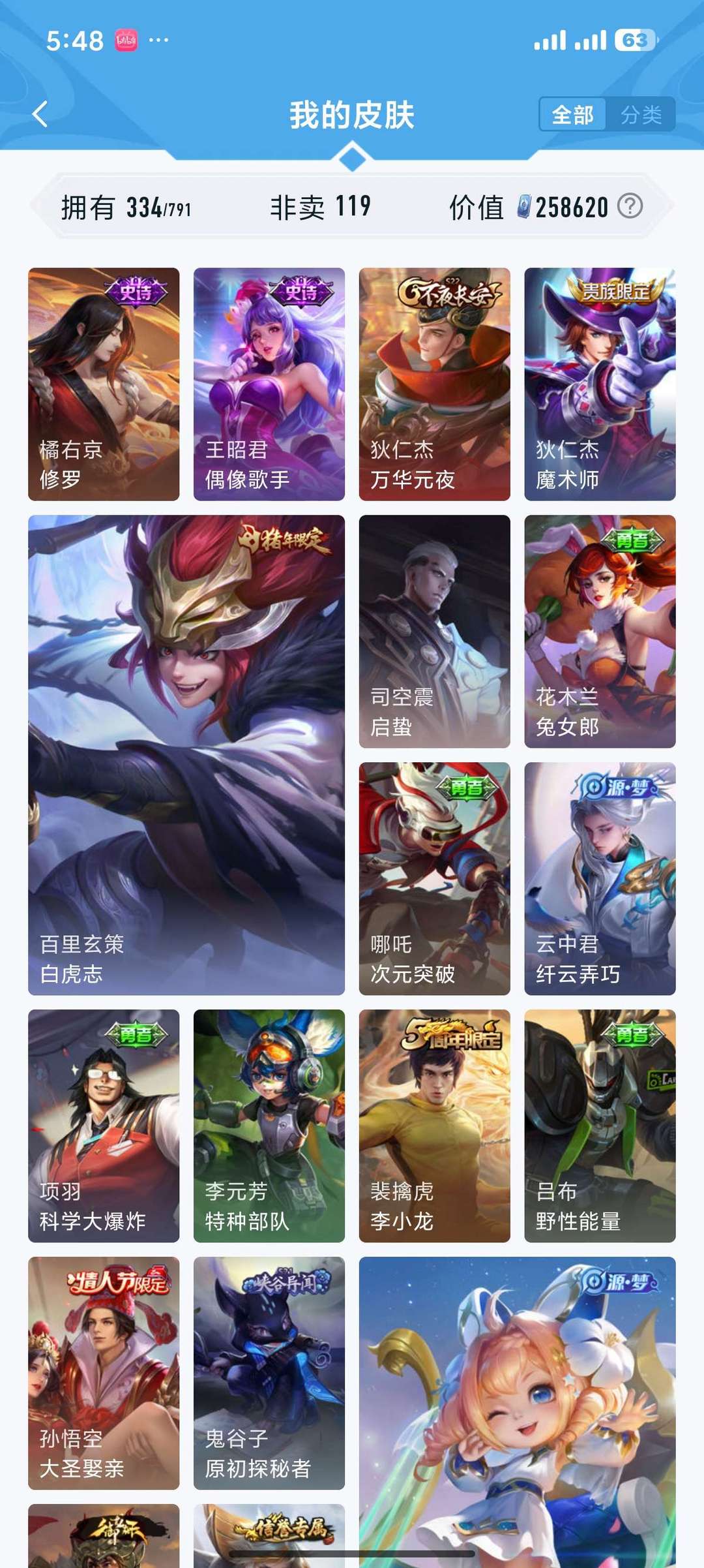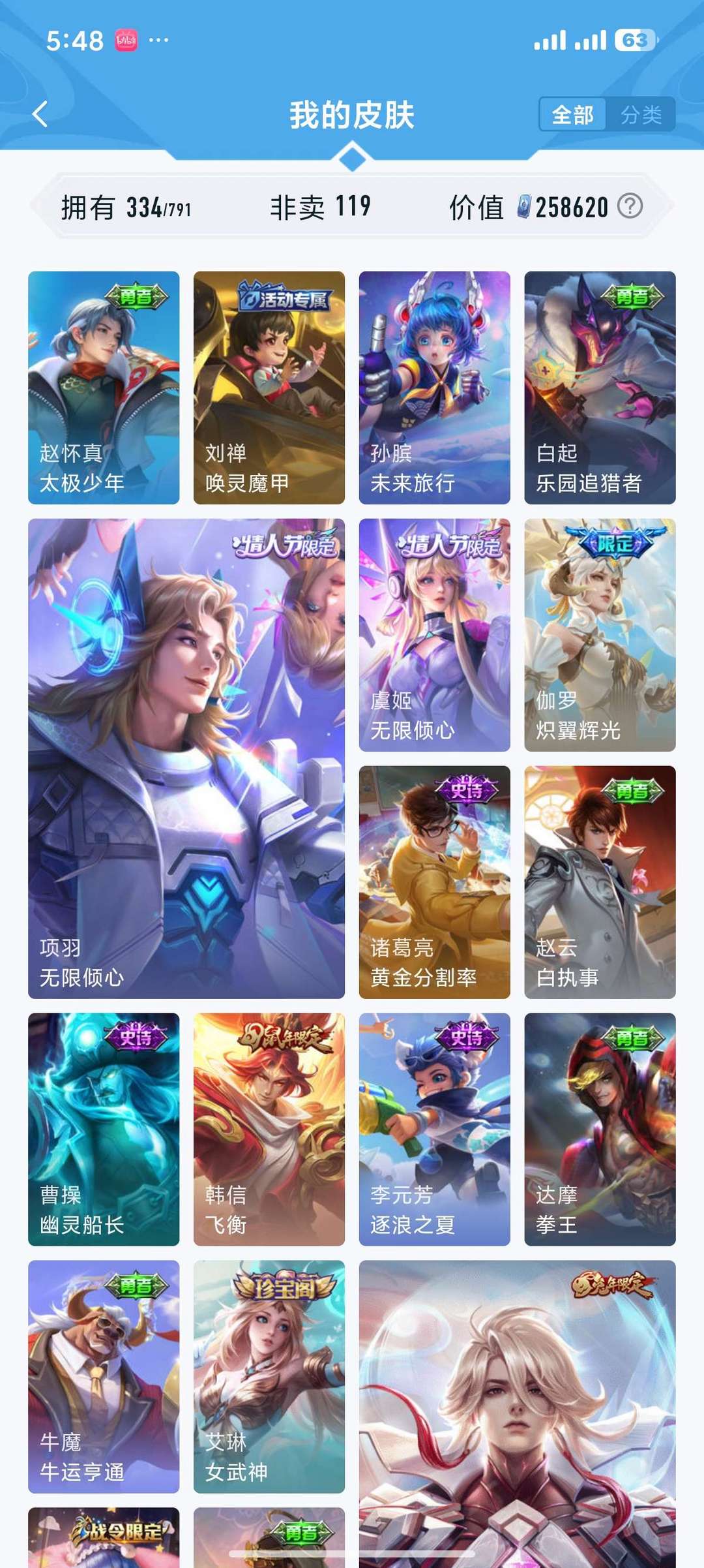 贵八,李白无双,貂蝉典藏,马可波罗珍品传说,白虎志,青龙志,至尊宝,相柳等高品质皮肤