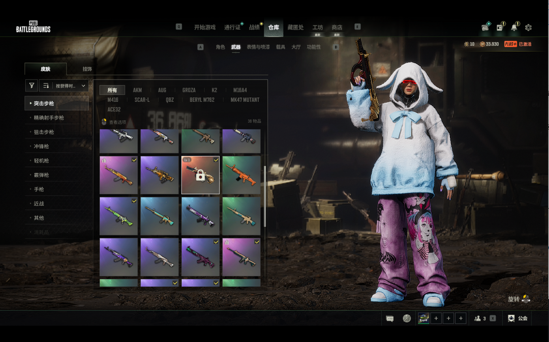 可排位号迈凯伦超跑丶陶洛斯aug丶无重力mp5丶银河762丶黄金aug丶分形qbz丶打带跑套装丶满级迈凯伦通行证