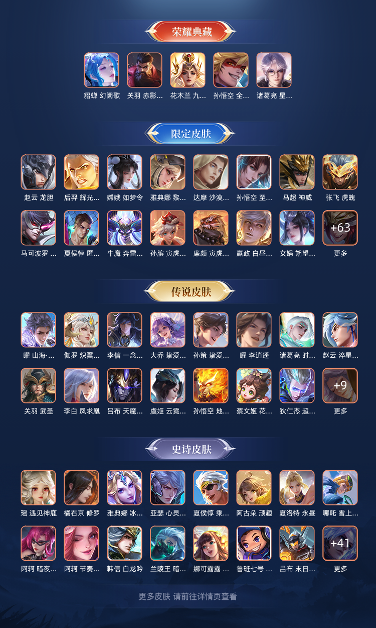 荣耀典藏,无双,各种限定,闲置,满铭文500以上皮肤