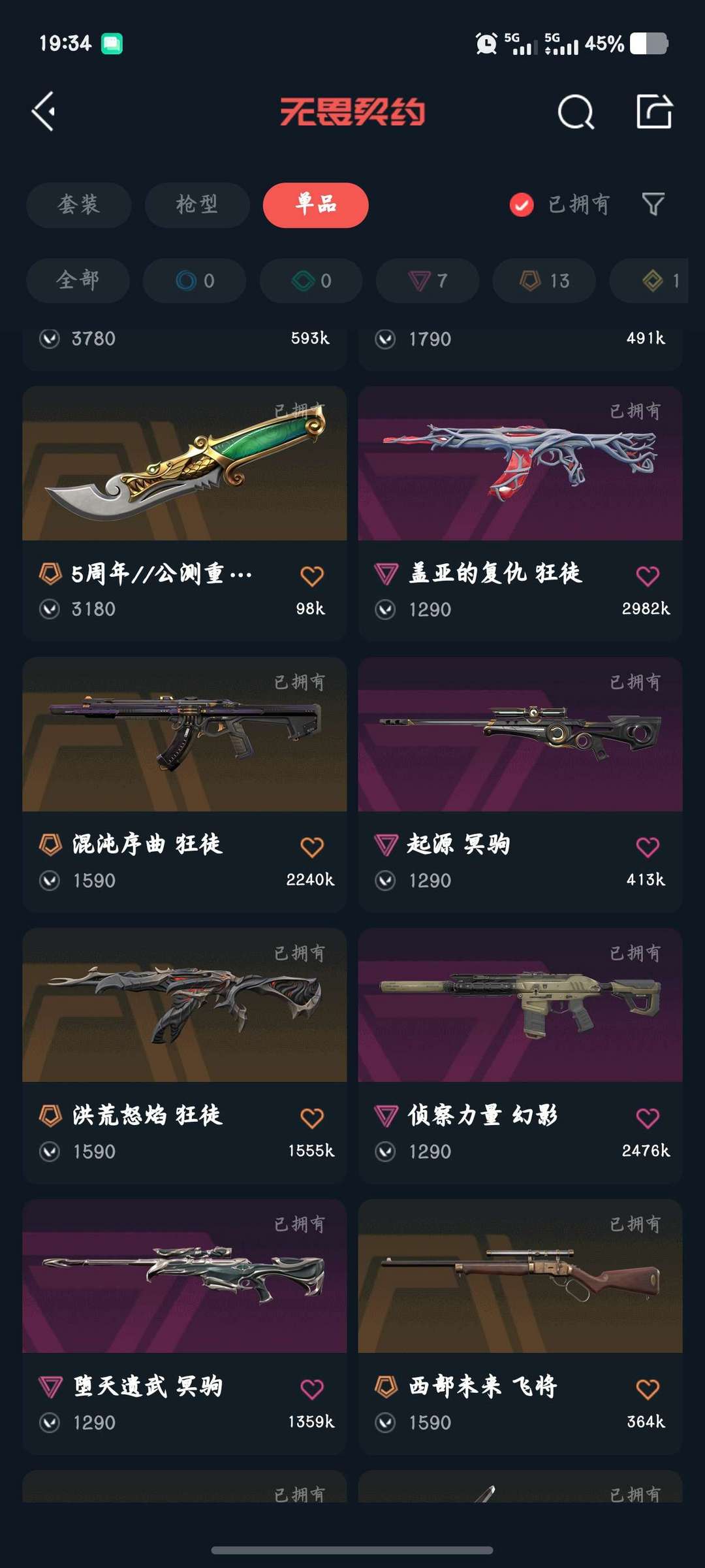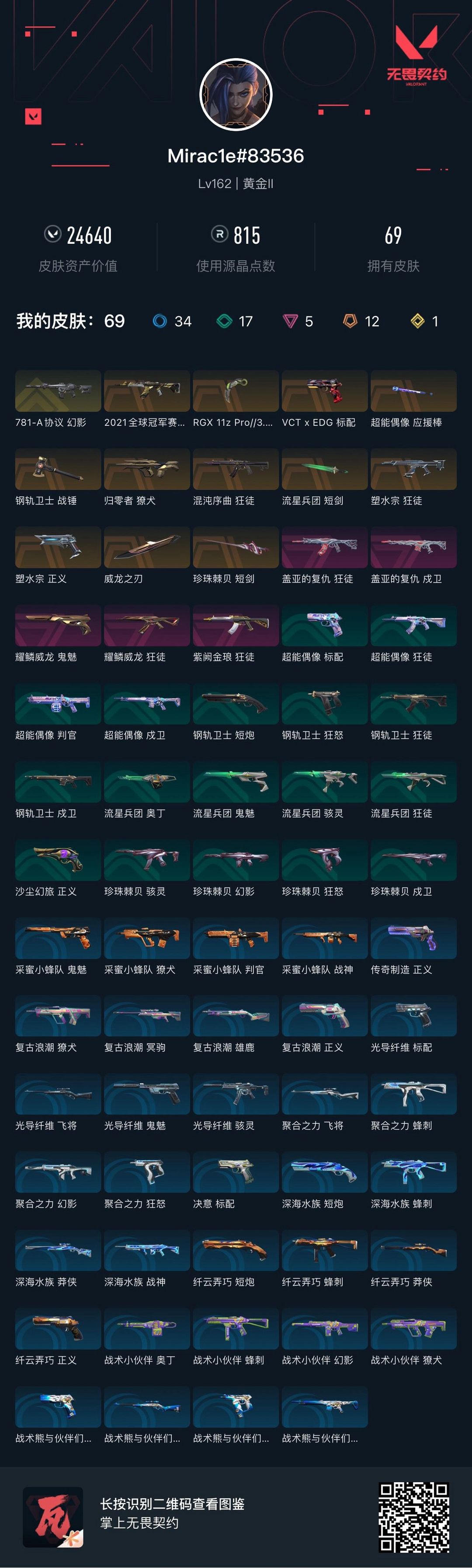 【铂金I】狂徒:艾沃莉,威龙,光荣异象,掠影☆幻影:侦查,混沌☆正义:离子,塑水宗 ☆刀:显卡☆标配神罚