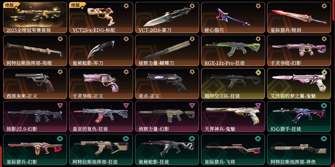 【青铜II】神罚套装⭐VCT标配紫阙标配⭐十把狂徒:离子塑水宗盖亚光荣显卡奇点虚空噬影者耀鳞⭐侦查幻影