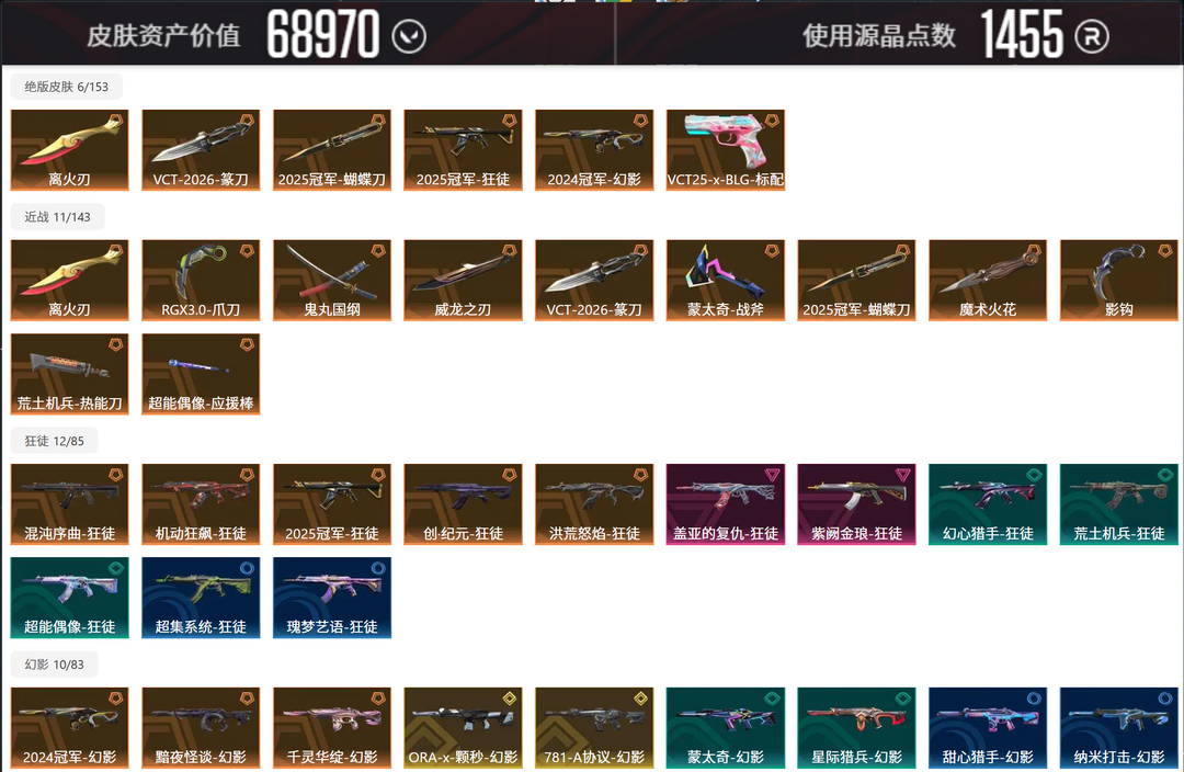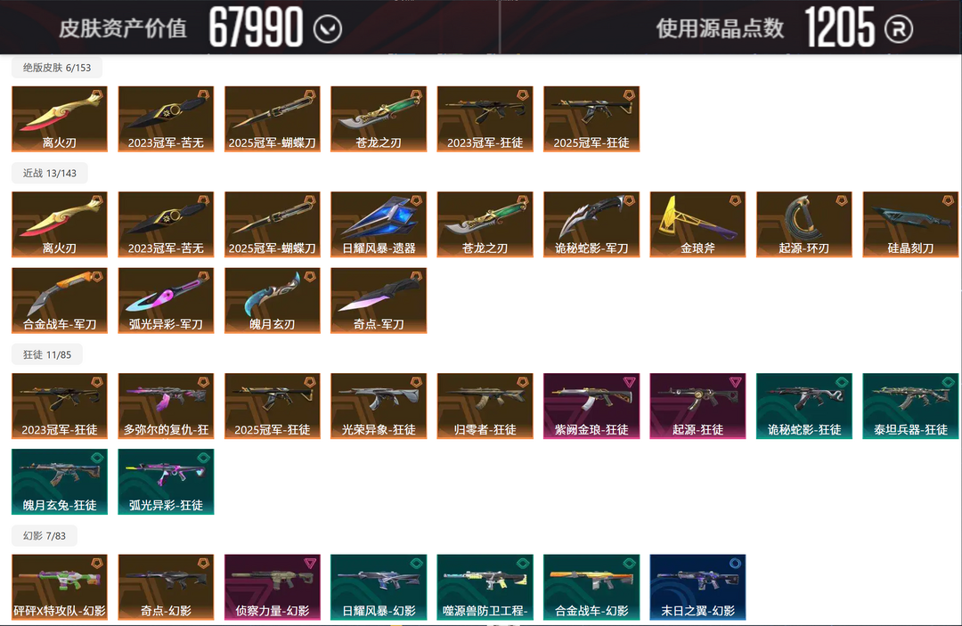 【白银I】⭐限定21冠军23冠军⭐14W库存1500R⭐11把狂徒⭐鬼丸蝴蝶威龙剥皮⭐双城套奇点套耀麟套