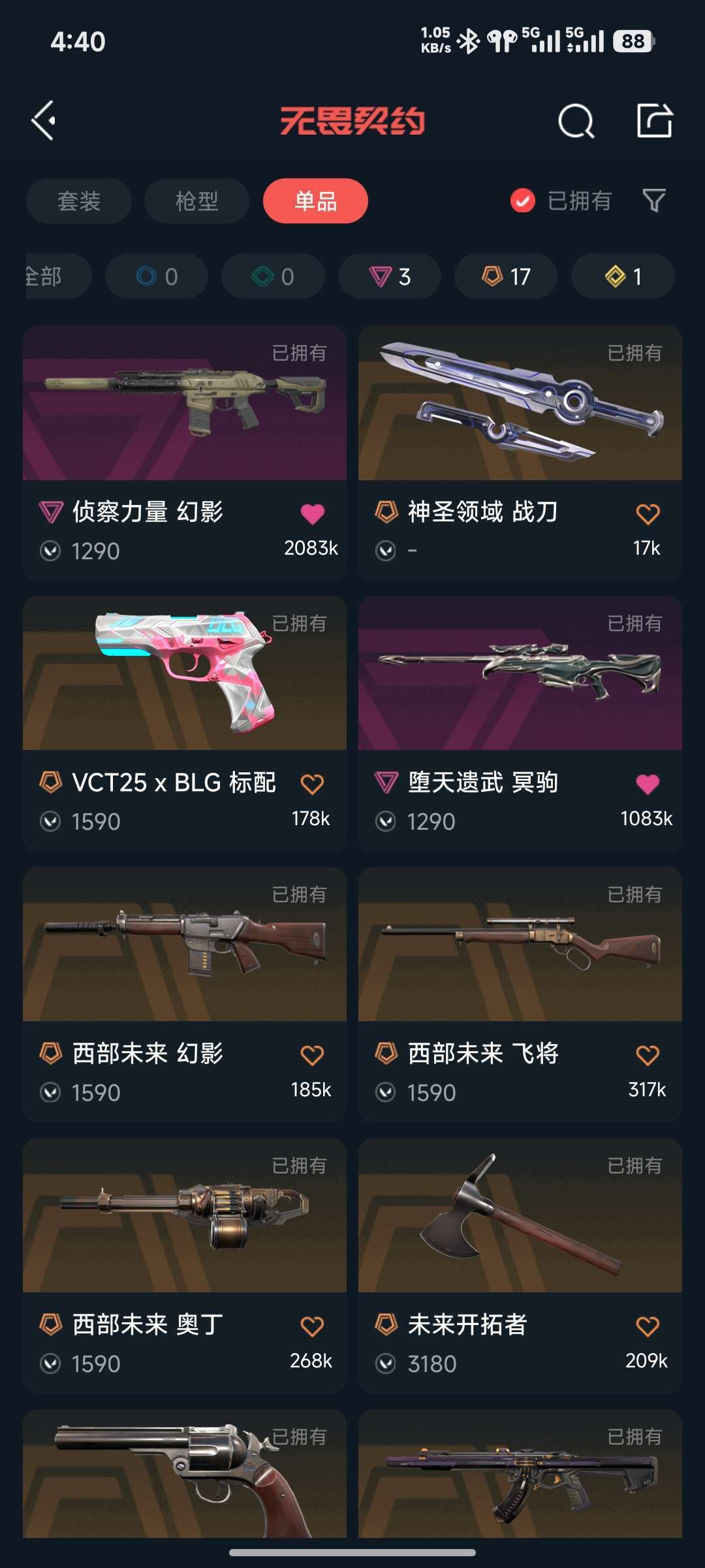 【当前段位:铂金I】无畏契约23冠军套,24冠军套,25冠军套,离子大狙,奇点正义皮肤账号