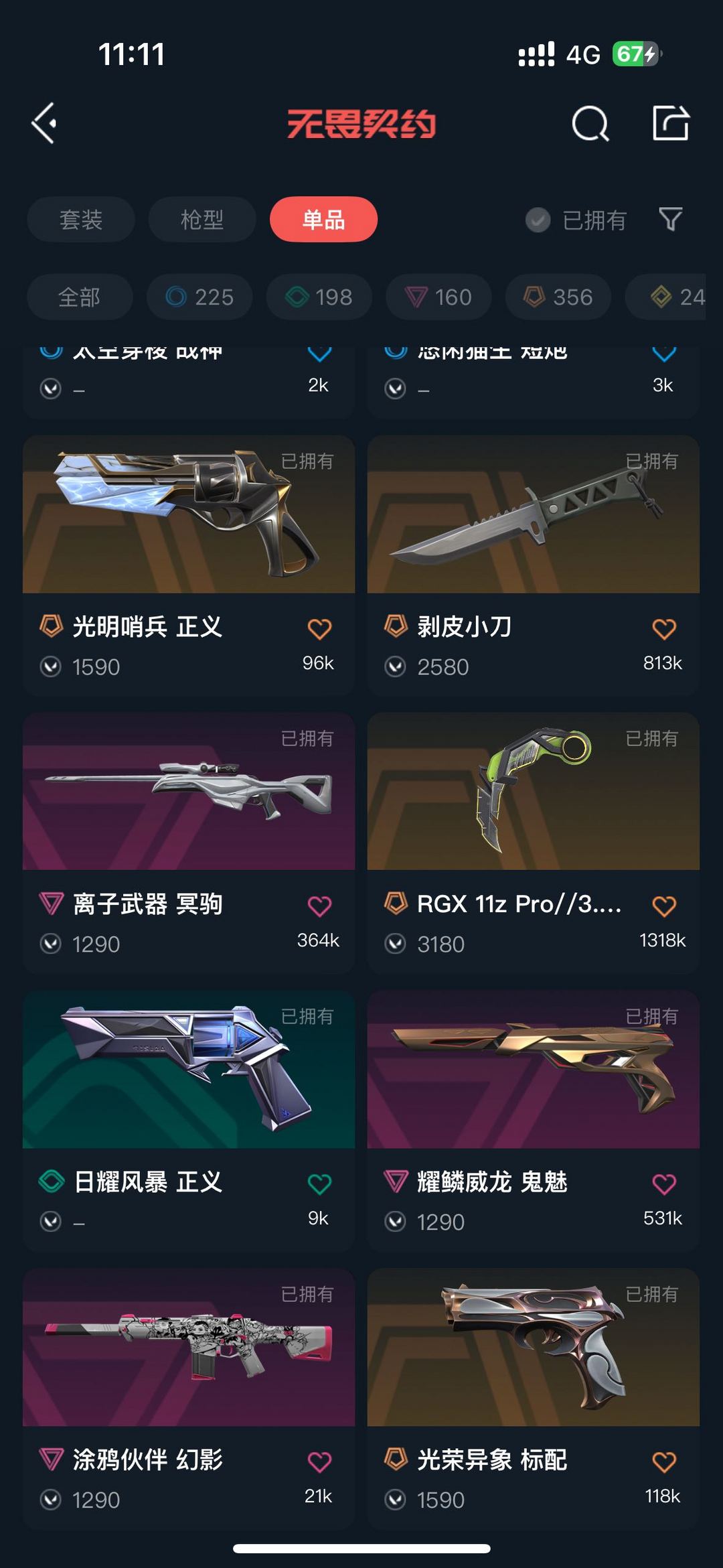 【当前段位:白银II】暗夜套,奇点2.0套,西部纪元套,双城之战套,掠夺1.0套,vct爪刀等等,ak皮肤多
