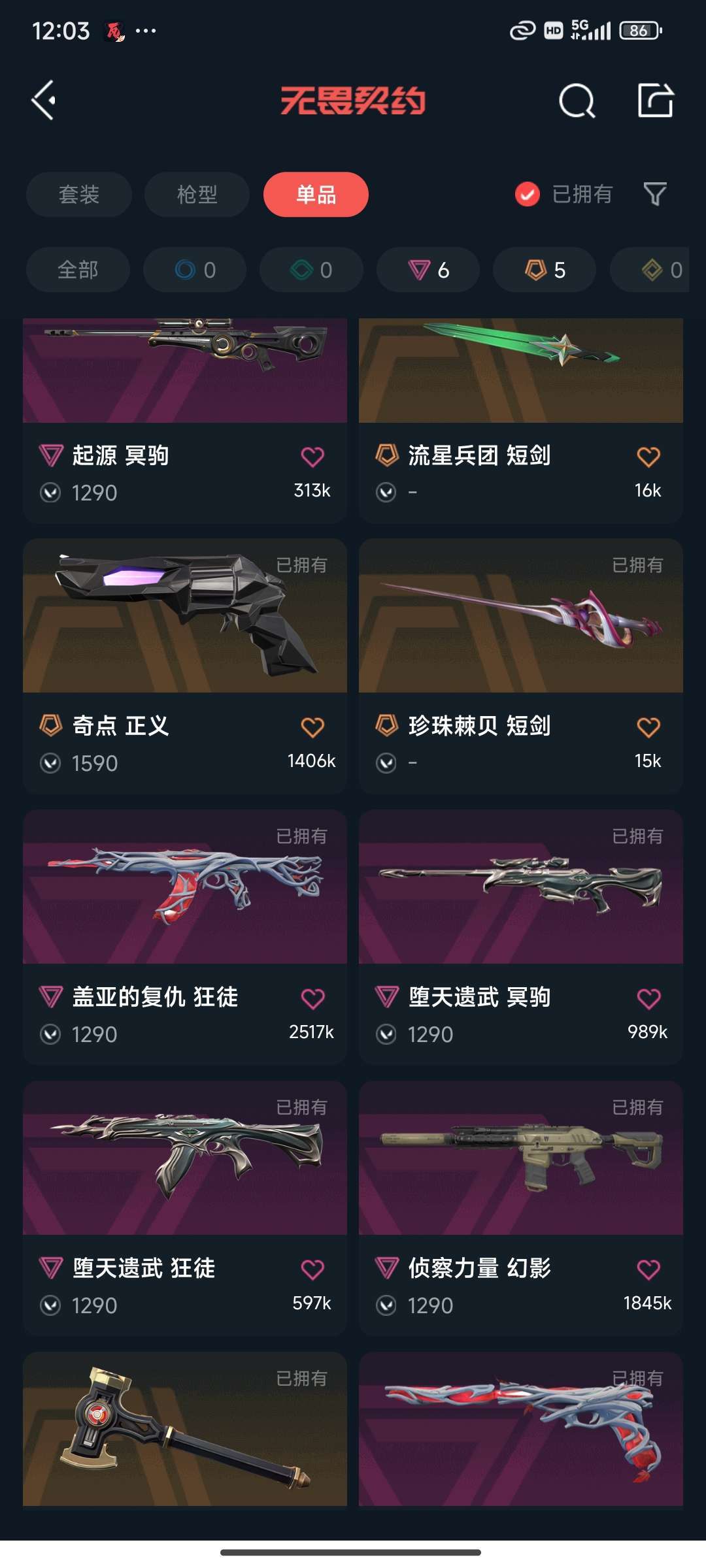 【当前段位:钻石I】武器皮肤如下图 角色全有 其他武器皮肤大多为手册皮肤