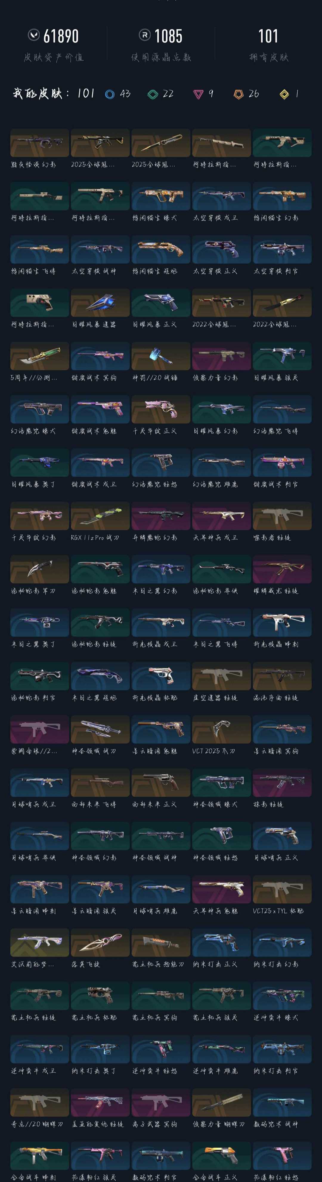 【当前段位:铂金I】21冠军套24冠军套VCT25爪刀起点2.0套装暗夜怪谈套装侦查力量幻影太刀威龙之刃紫金AK