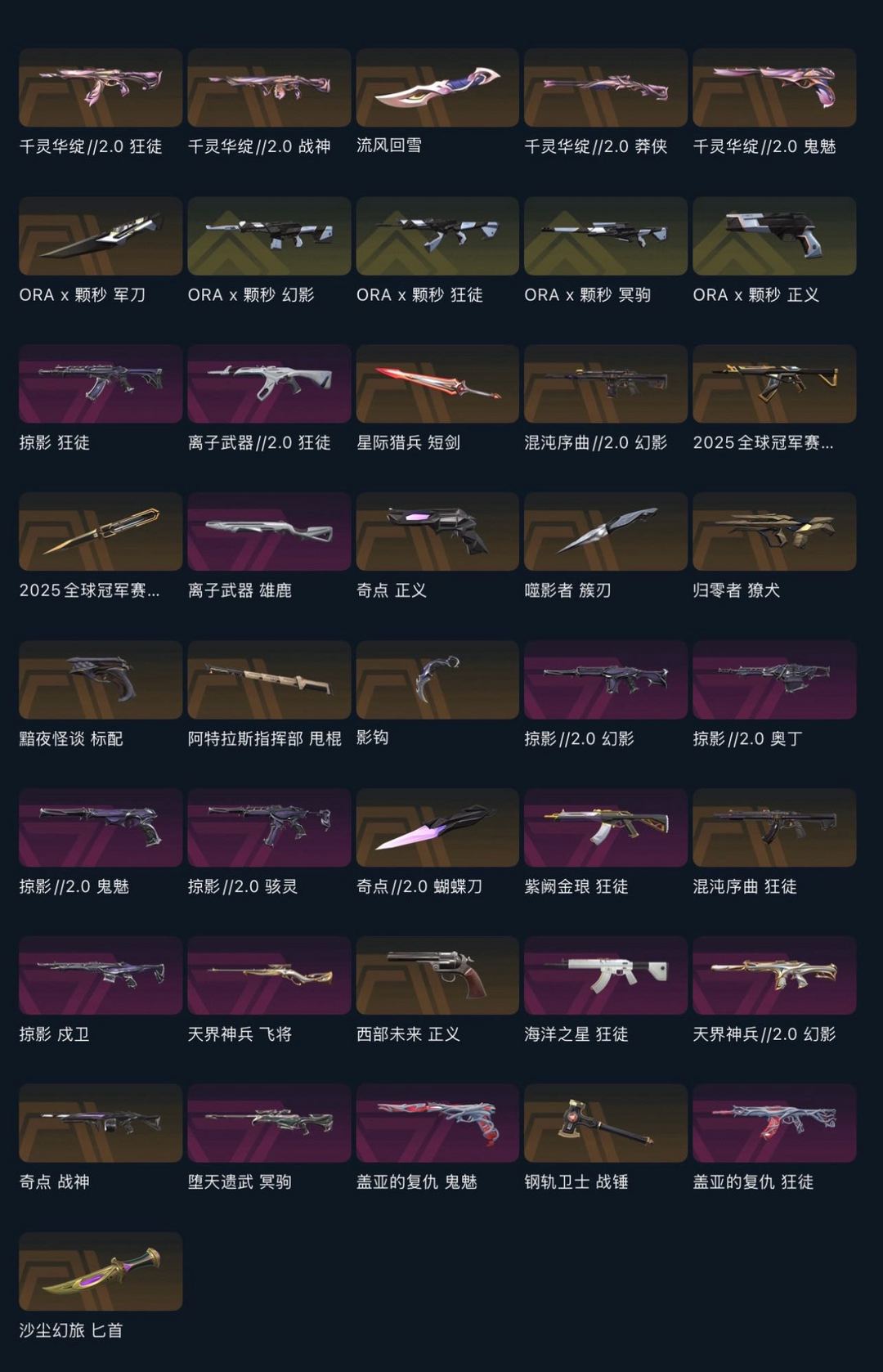 【当前段位:黄金I】可排位⚡21冠军AK⚡25冠军AK⚡24冠军幻影⚡超时空AK⚡25VCT爪刀⚡异鳞魔蛇幻影⚡显卡AK