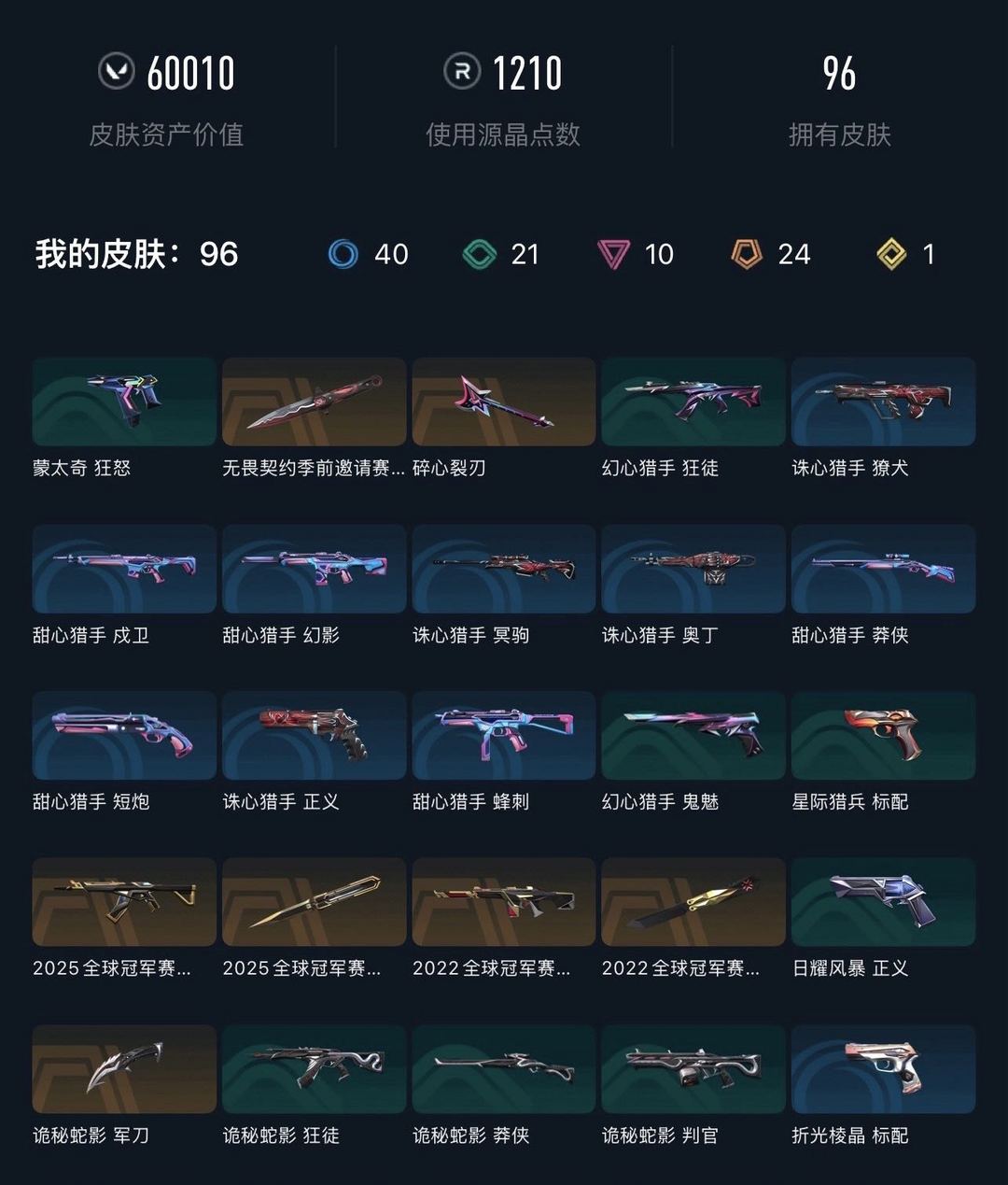 【当前段位:铂金II】【可排】9W库存✅24冠军套✅VCT25爪刀✅猫猫狂徒✅莲花套✅电玩套✅显卡套✅西部未来套✅创纪元