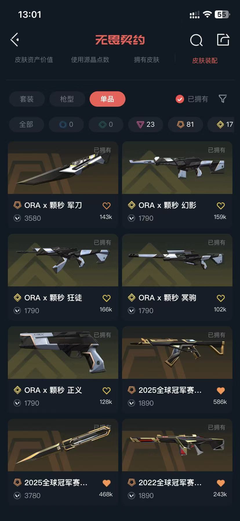【当前段位:铂金I】可排✅2075r✅2021冠军套✅电音光谱✅虚空遗器✅西部未来✅噬影者✅VCT爪刀