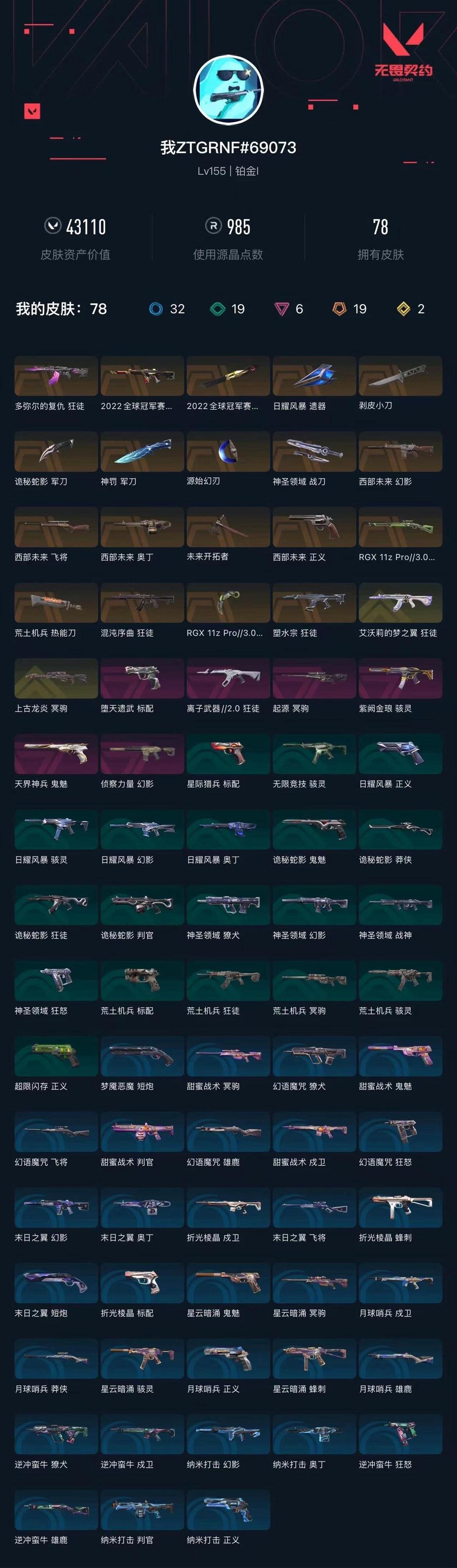 【当前段位:铂金III】可排10万库冻结重上⚡️2425冠军vct爪混沌幻影创纪元套艾沃莉虚空套⚡️般若套莲花正义双城奇点套