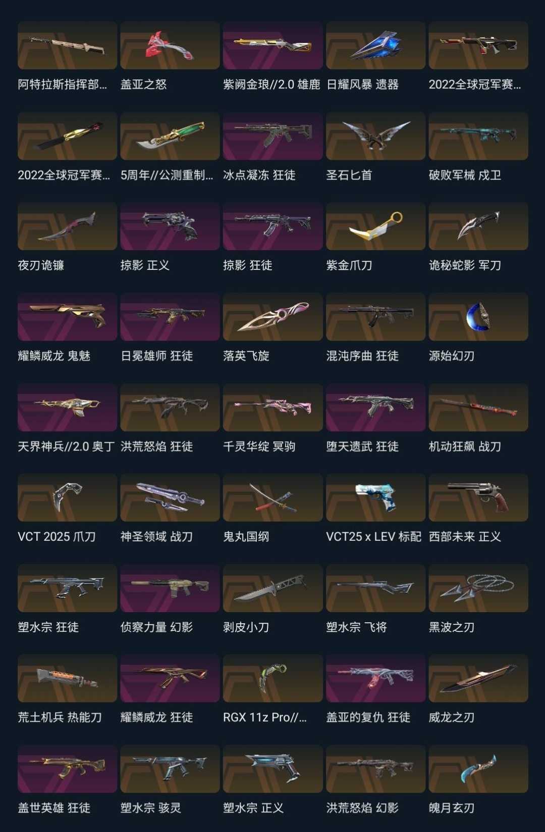 【当前段位:铂金II】可排✅25冠军⭐创纪元掠夺紫金离子2.0威龙虚无显卡狂徒⭐vct爪刀蝴蝶刀威龙之刃⭐异鳞魔蛇千灵华绽