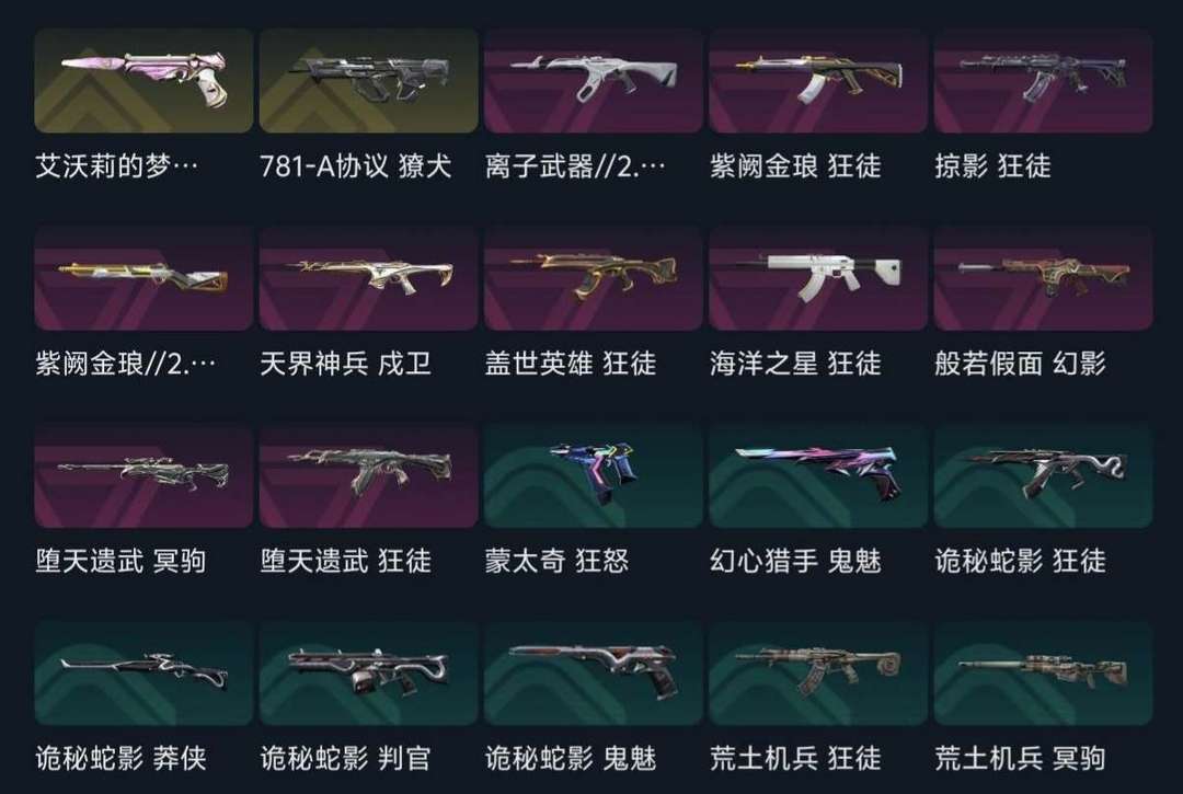 【黄金I】影钩,22冠军刀,流风回雪(莲花扇子),ak盖亚,偃月苍龙,莲花,素水,奇点正义,弃王大狙等等好枪