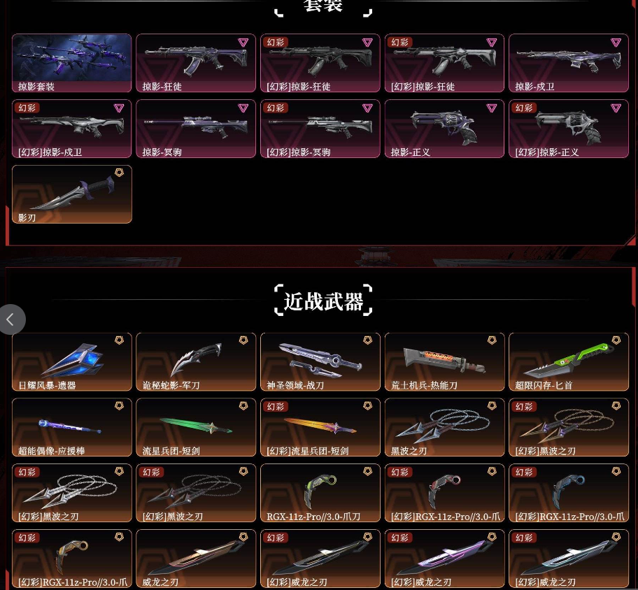 【铂金I】掠影2威龙套❤️超时空混沌序曲盖亚的复仇掠影双城离子堕天狂徒❤️海洋幻影vct爪刀西部正义显卡爪刀