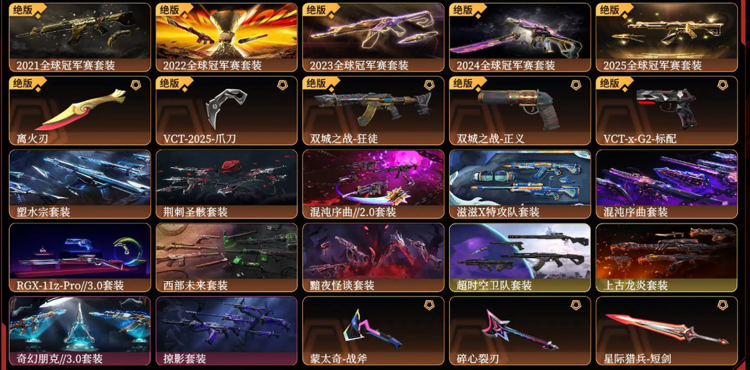 【黄金II】大库存限定21冠军套✨限定双城套✨黯夜套✨奇点2.0套✨全神中神狂徒✨vct标配