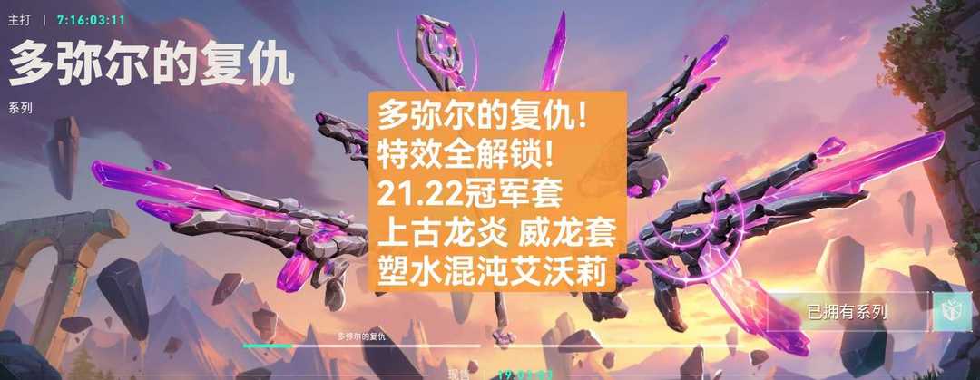 【当前段位:黄金I】多弥尔的复仇❤️21冠军套22✅上古龙炎套威龙套⚡️塑水混沌艾沃莉洪荒⚡️vct双城西部
