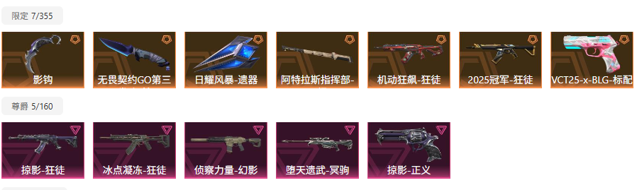 【当前赛季无】影钩✅25冠军掠影机动狂飙狂徒✅侦查幻影弃王遗思大狙✅BLG标配