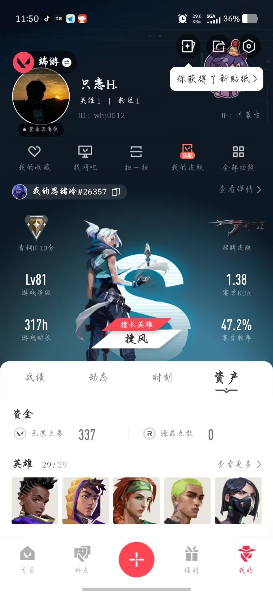 【黄金III】1IDyuan,有英雄,有皮肤,可排,可匹配,感谢老板使用