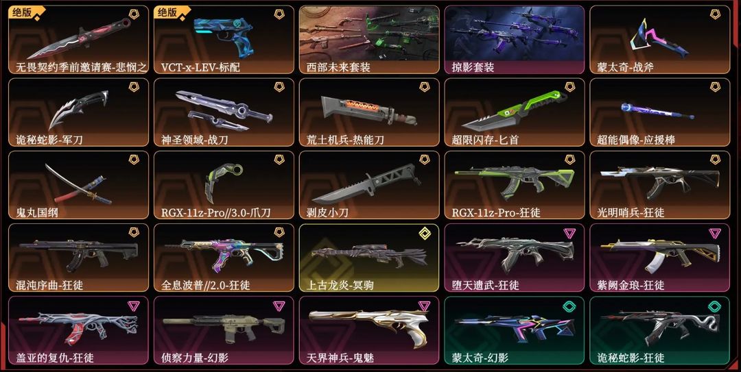 【铂金I】vct篆刀颗秒刀25冠军套创纪元套✨显卡盖亚光荣流脓混沌离子威龙紫金ak✨侦察莲花m4✨弃王冥狙