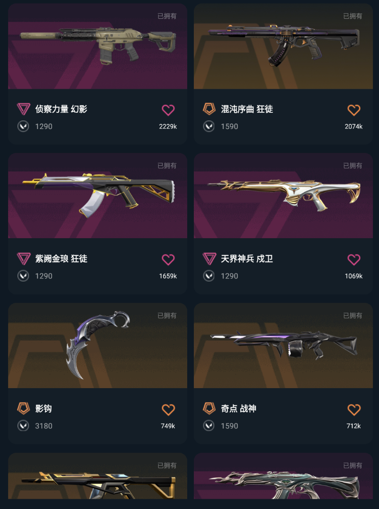 【黑铁II】2w库存⭐紫金爪刀⚡盖亚狂徒⚡神中神罚幻影⚡奇点狂徒⚡般若狂徒⚡堕天冥狙⚡盖亚战神