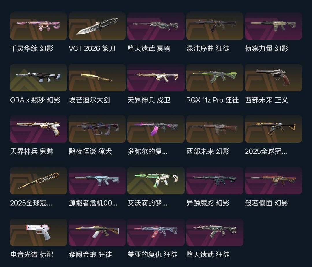 【白银II】可排 冻结三分钟重上 ORA颗秒套25冠军24冠军套VCT25爪刀光荣异象套西部未来套混沌序曲套
