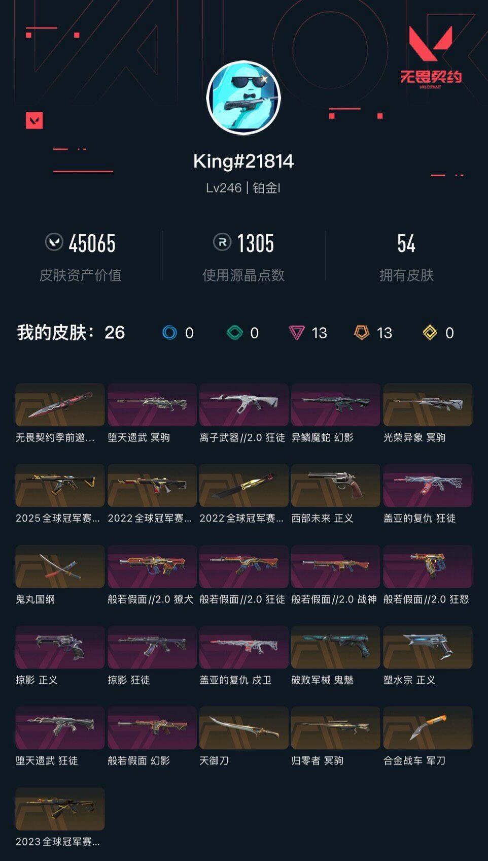 【铂金I】可排✅5.5万⭐25冠军套超时空卫队冰点虚无塑水宗⭐黑波之刃蝴蝶刀落英飞旋⭐侦察洪荒⭐紫金莲花vct