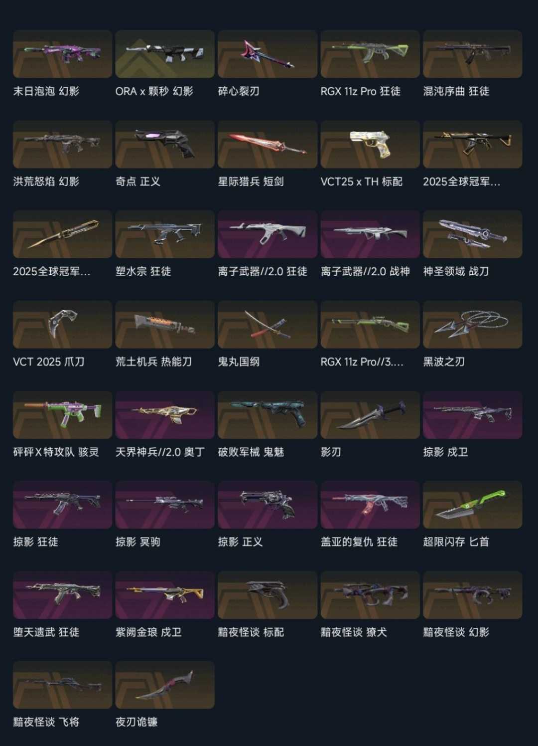 【黄金II】可排✅西部未来⚡镭切创纪元⚡塑水宗狂徒⚡黯夜怪谈幻影⚡天界神兵⚡VCT25标配⚡紫金爪刀