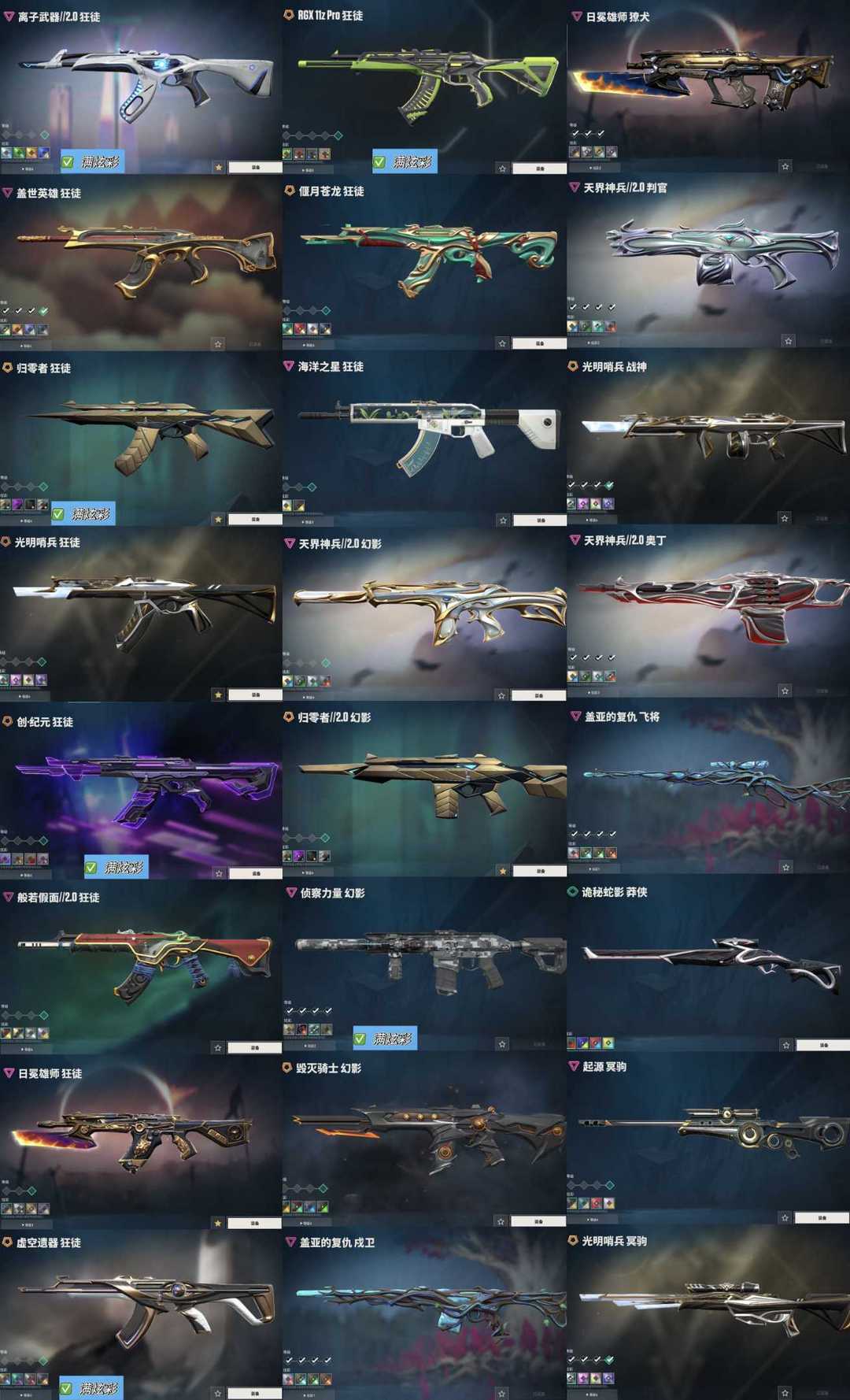 【钻石II】玫瑰套vct篆刀莲花2.0套✨荆棘25冠军创纪元光荣流脓混沌掠影威龙Ak✨电音侦察颗秒m4✨猫猫奥丁