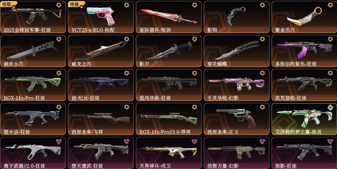 【铂金II】2022冠军威龙套✨超时空混沌序曲纪元离子般若雄狮狂徒✨VCT25西部正义蒙太奇黑波之刃爪刀显卡爪