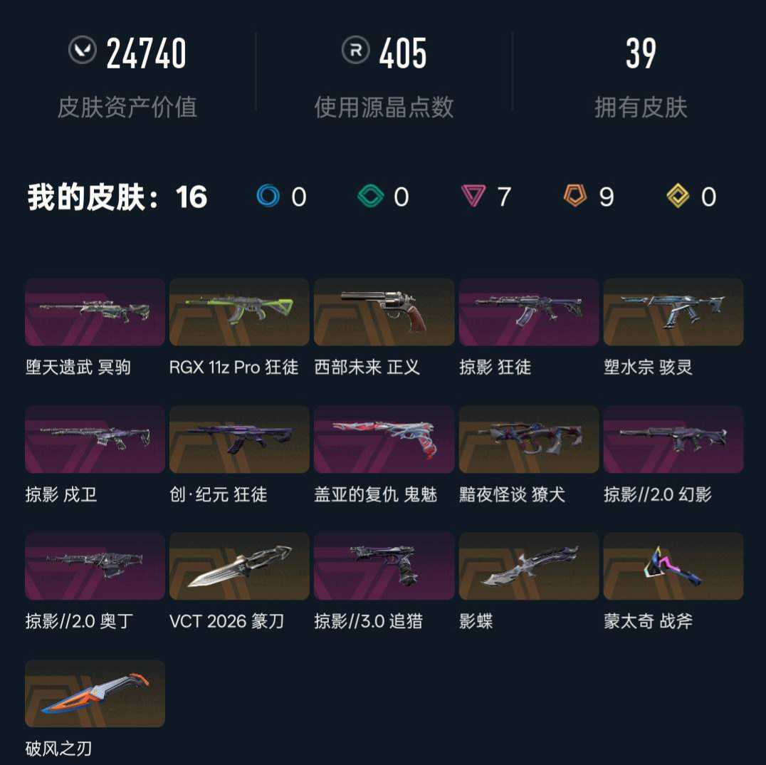【黄金II】2.5w库存⚡vct篆刀⚡堕天冥狙⚡回火掠影全套⚡显卡掠影纪元狂徒⚡塑水骇灵⚡盖亚鬼魅⚡掠影追猎