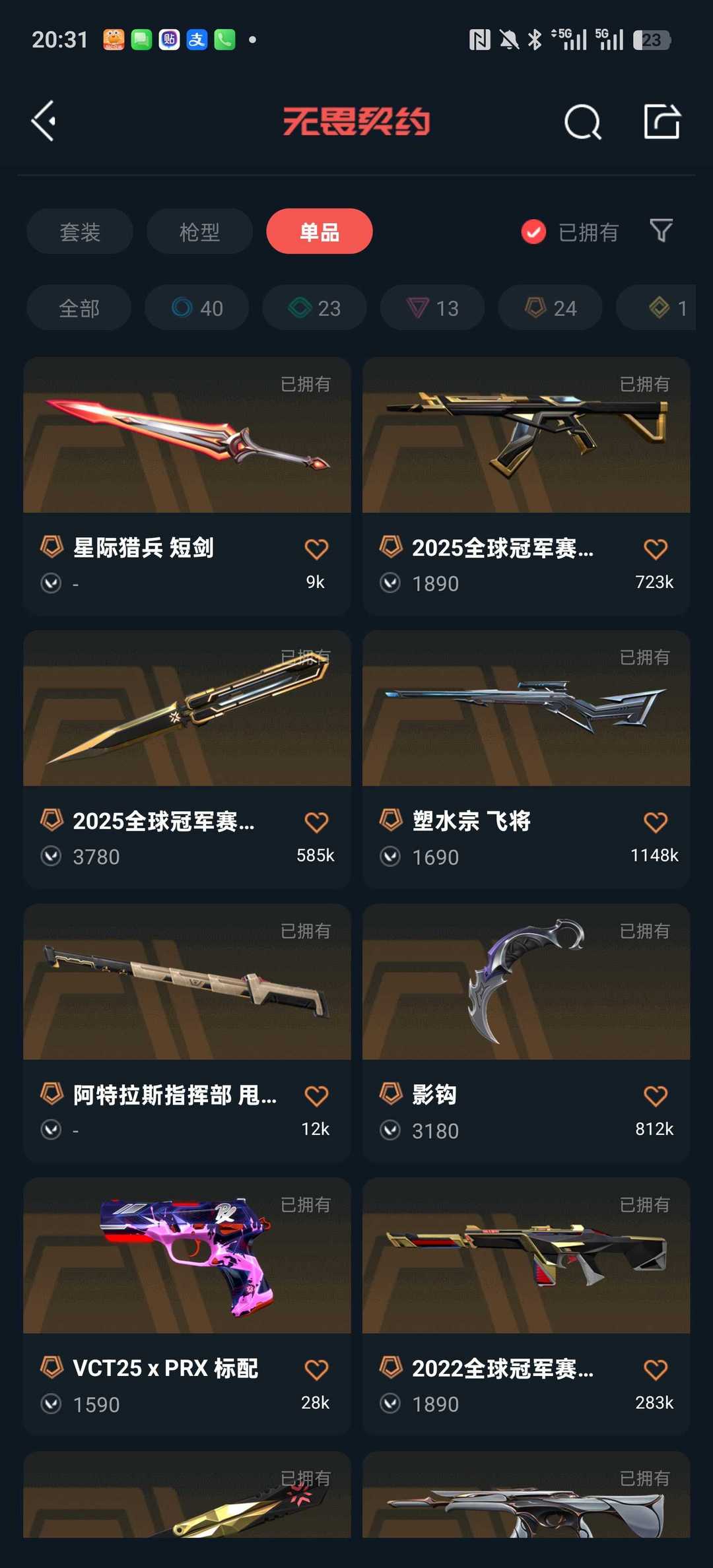 【黄金I】可排13万全限定|22/23/25/24/21冠军|黑波之刃+VCT爪|+猫猫+莲花+塑水宗