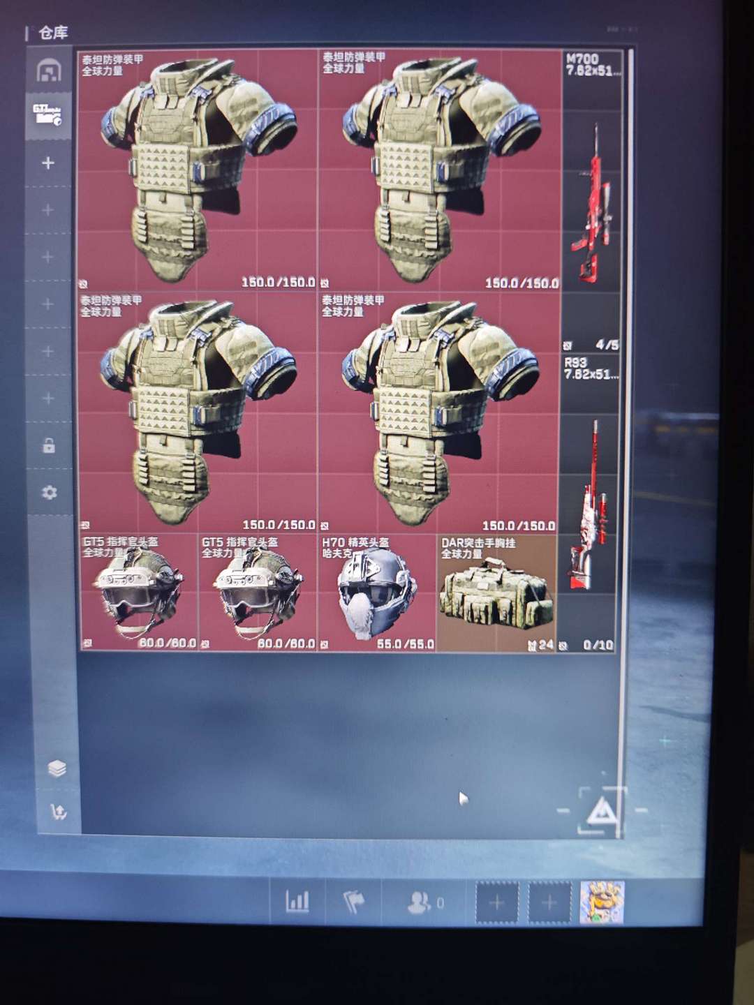 仓库中的六套和五套不能动(包括扩展箱),其他的满改枪,其他的满改枪和头盔可以用