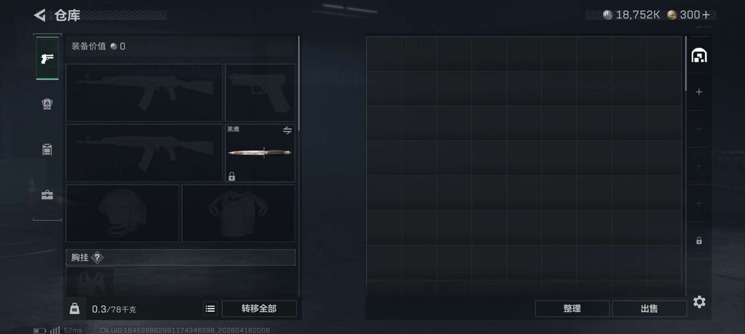 猛攻开黑体力3/负重3/黑鹰/典藏外观0/武器外观数0