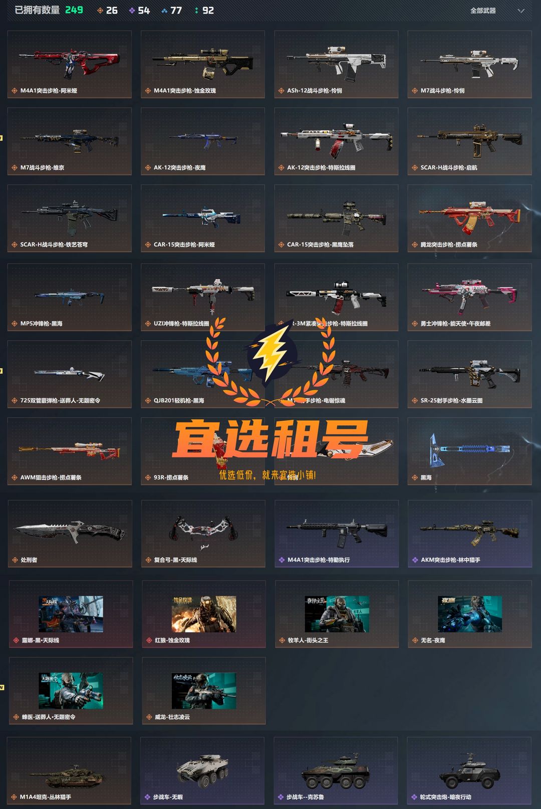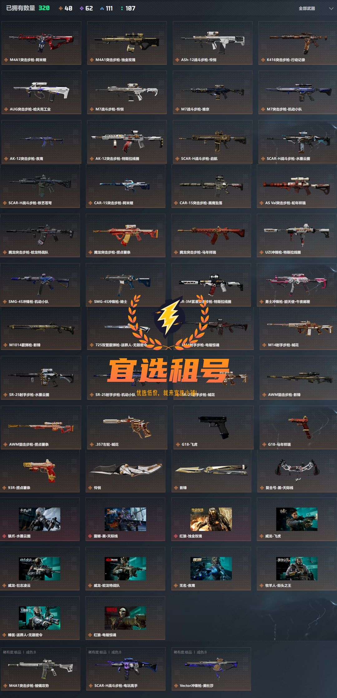 2红3刀蚀金玫瑰*北极星*影锋*水墨云图*吴彦祖飞虎*满体力15传说枪皮