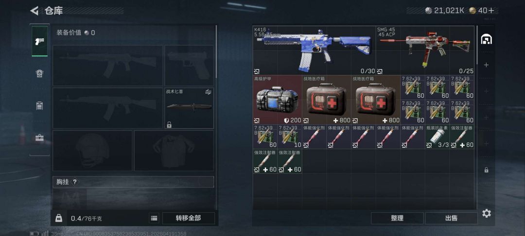 猛攻开黑体力7/负重7/红狼-蚀金玫瑰/深蓝-不破誓约/黑鹰/典藏外观0/武器外观数0